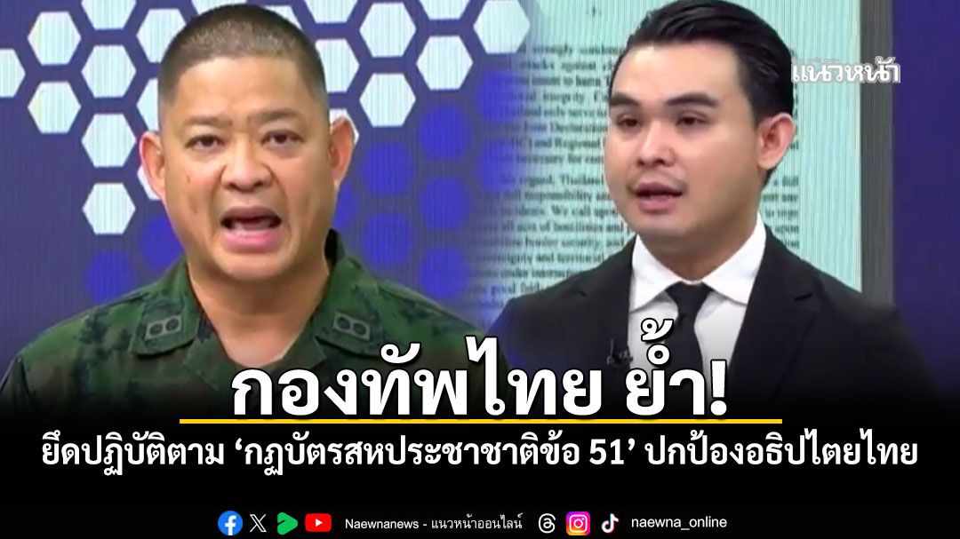 ในเวลาต่อมา ดร. ภัทรพงษ์ แสงไกร อาจารย์ประจำคณะนิติศาสตร์ มหาวิทยาลัยธรรมศาสตร์ ได้ออกมาพูดถึงการใช้กำลังป้องกันตนเองในระดับรัฐหรือระดับชาติ ซึ่งประเทศไทยมีความจำเป็นต้องใช้สิทธิโดยชอบธรรมในการป้องตัวเอง ตามกฎบัตรข้อ 51 ของสหประชาชาติ เพื่อปกป้องอธิปไตยและบูรณภาพแห่งดินแดน รวมไปถึงการคุ้มครองรักษาความปลอดภัยประชาชนคนไทย เคารพกฎหมายระหว่างประเทศอย่างเคร่งครัด ได้สัดส่วนกับภัยคุกคามที่เกิดขึ้น มุ่งหมายไปที่การจำกัดเป้าหมายที่เป็นอันตรายจากกัมพูชาเท่านั้น พยายามหลีกเลี่ยงความเสียหายไม่ให้สร้างผลกระทบต่อประชาชน สอดคล้องกับหลักกฎหมายระหว่างประเทศ