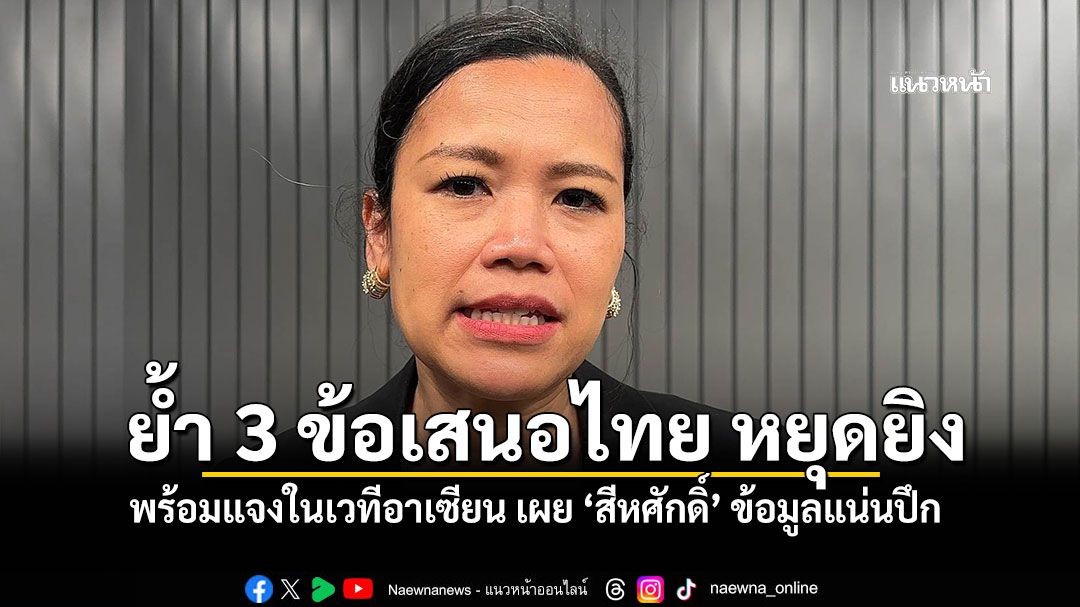 " ย้ำว่า 3จุดยืนนี้ไม่เกี่ยวกับการประชุมอาเซียนในวันที่ 22 ธ.ค. 2568 นี้ แต่จะเป็นคำตอบของฝ่ายไทย หากประเทศสมาชิก สอบถามหลัง หลังหลายประเทศ เช่น สหรัฐ จีน มาเลเซีย ต้องการให้หยุดยิง และเราย้ำชัดเจนว่าเราไม่ใช่เป็นผู้รุกราน แต่ฝ่ายกัมพูชาเป็นผู้รุกรานจะต้องเป็นผู้ประกาศ เพราะประเทศไทยมีหน้าที่ปกป้อง พื้นที่อธิปไตยและความปลอดภัยของประชาชน ที่เราได้ให้ความสำคัญ เป็นลำดับแรก ส่วนสถานการณ์จะยืดเยื้อไปอีกนานเท่าไหร่นั้นก็ขึ้นอยู่กับทางกัมพูชาจะตอบรับในสามข้อนี้หรือไม่"
