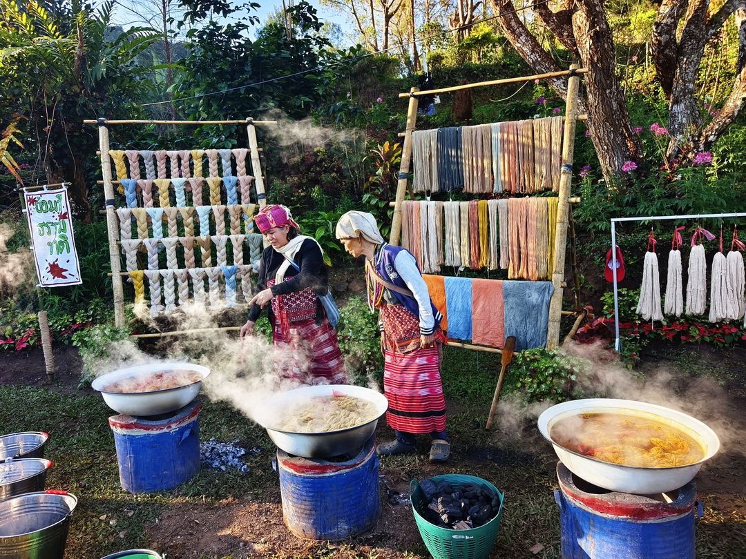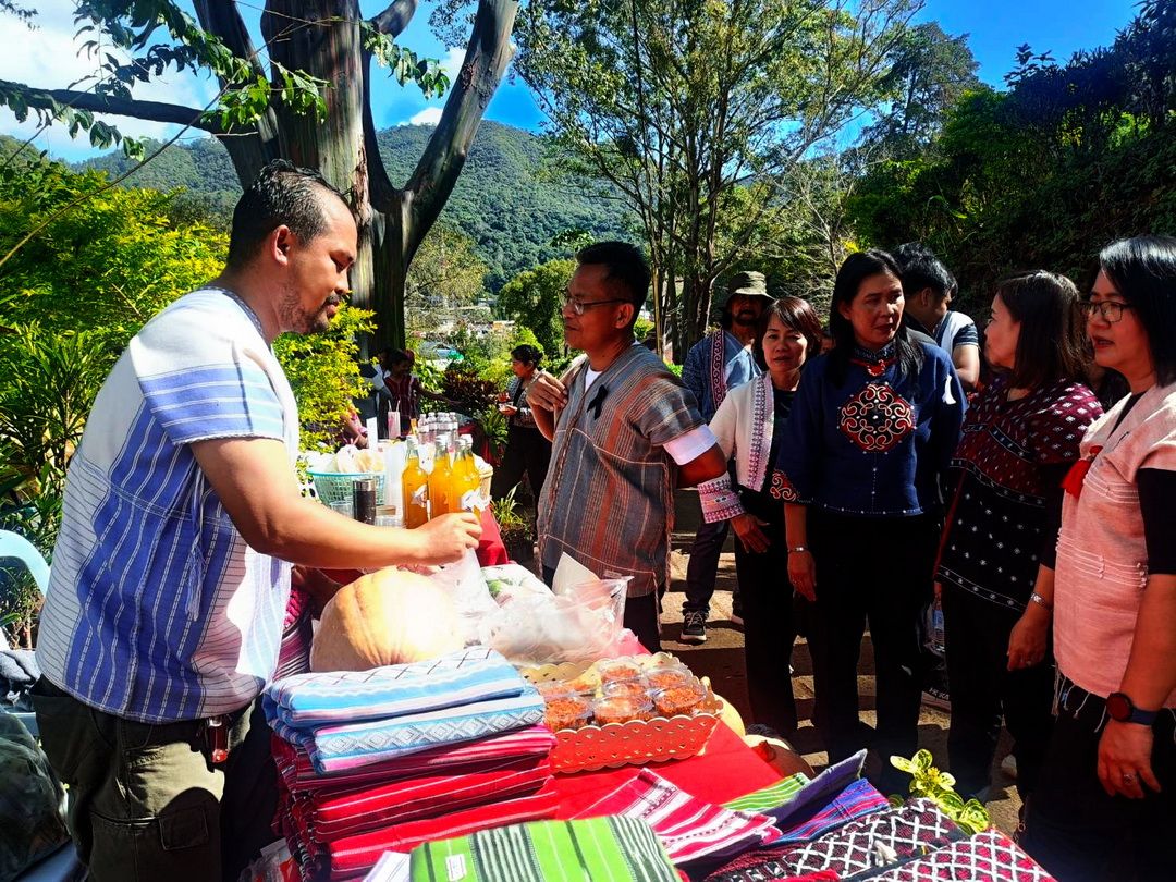 ในวันเดียวกัน รองอธิบดีฯ ได้ร่วมเปิดงาน ‘หนาวนี้ที่แม่เหาะ’ ซึ่งจัดขึ้นเพื่อส่งเสริมวิถีอัตลักษณ์ชุมชนและการท่องเที่ยวภูมิวัฒนธรรม โดยมีกิจกรรมที่น่าสนใจ อาทิ การสาธิตย้อมสีธรรมชาติด้วยนวัตกรรมใหม่ การประกวดลายผ้าทอกะเหรี่ยง และตลาดนัดชุมชนที่รวบรวมอาหารชาติพันธุ์หลากหลาย รวมถึงผลิตภัณฑ์ท้องถิ่นอย่างกาแฟสดรสแม่เหาะ และ ‘ชาสวรรค์’ เพื่อสร้างรายได้และกระตุ้นให้ภาคเอกชนเข้ามาร่วมพัฒนาพื้นที่สูงอย่างยั่งยืน