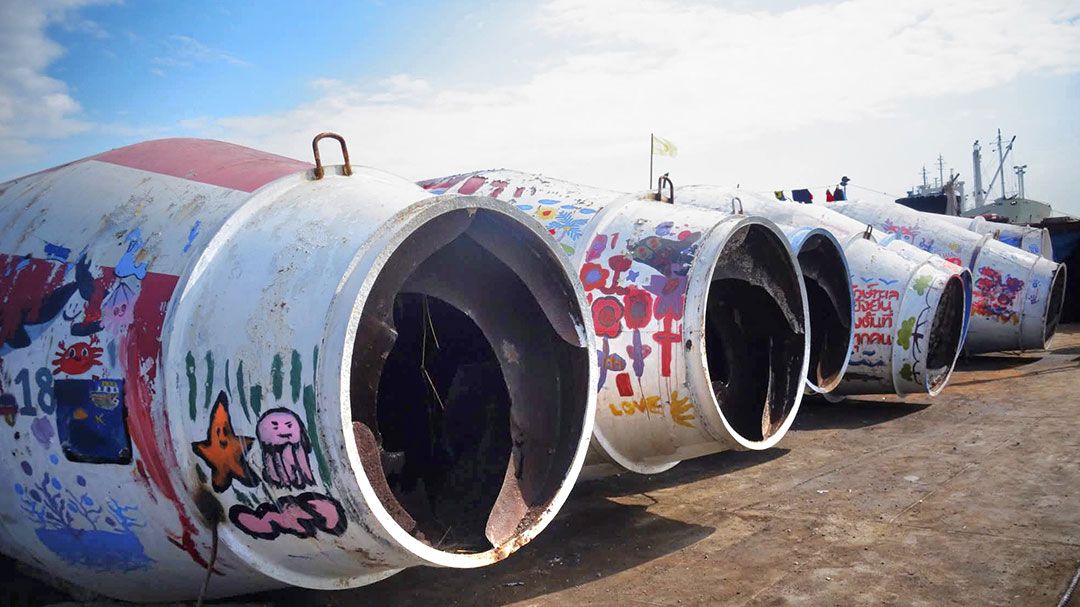 เพื่อที่จะนำปะการังเทียมไปติดตั้งในพื้นที่จัดทำปะการังเทียมของจังหวัดสมุทรสาคร บริเวณ อ่าวตัว ก. ที่ได้รับการอนุญาตจากหน่วยงานที่เกี่ยวข้อง มีสองแปลงหลักอยู่บริเวณปากอ่าวท่าจีน ทั้ง 2 ฝั่ง ซึ่งเรียกว่า แปลง “สมุทรสาคร 1” และแปลง “สมุทรสาคร 2” ซึ่งเป็นหนึ่งในพื้นที่ฟื้นฟูทรัพยากรทางทะเลของจังหวัด เป็นจุดที่วางปะการังเทียมเพื่อเพิ่มแหล่งอาศัยให้สัตว์น้ำวัยอ่อนเสริมทรัพยากรระบบนิเวศใต้ทะเลให้สมบูรณ์ขึ้น