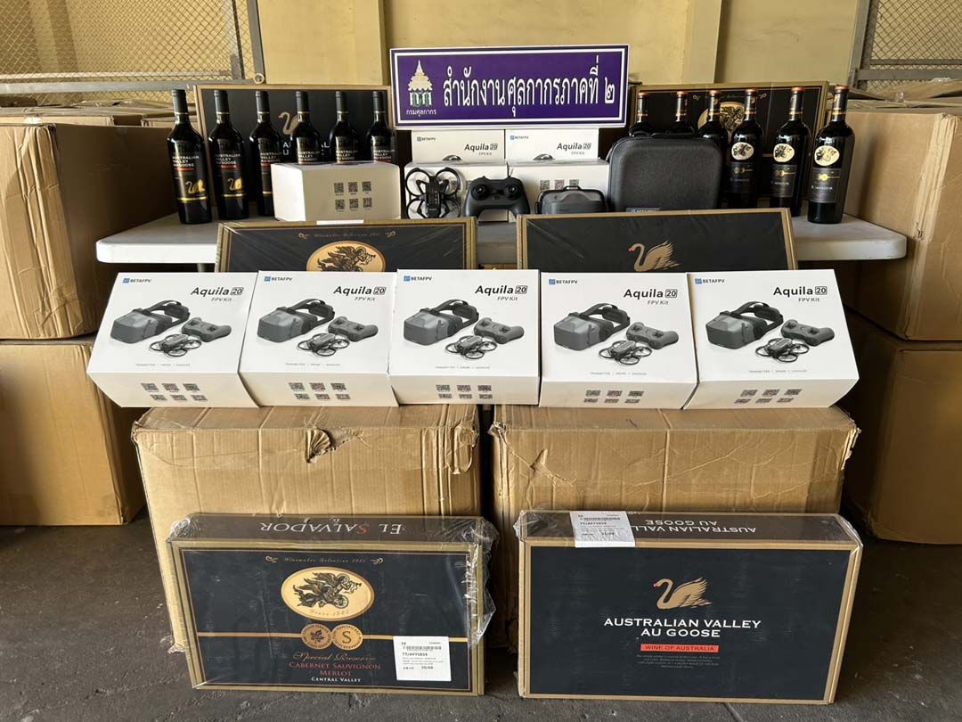 สำนักงานศุลกากรภาคที่ 2 จับกุม “น้ำหอม บุหรี่ต่างประเทศ กระเป๋า รองเท้า ละเมิดเครื่องหมายการค้า โดรน (Drone) และไวน์ เมืองกำเนิดต่างประเทศ” มูลค่าความเสียหายทางเศรษฐกิจรวมกว่า 126.14 ล้านบาท