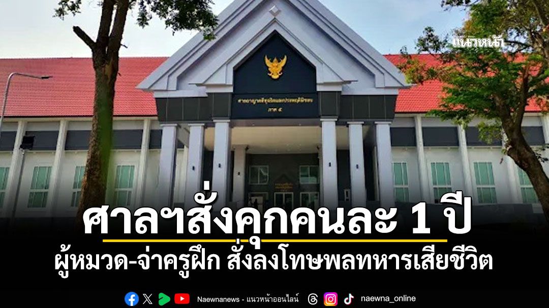 ศาลอาญาคดีทุจริตฯภาค 5 สั่งจำคุกคนละ 1 ปี ผู้หมวด-จ่าครูฝึก สั่งลงโทษพลทหารเสียชีวิต ในค่ายที่เชียงรายอย่างโหดร้าย-ไร้มนุษยธรรม ศาลปรานีเหลือจำ 8 เดือนไม่รอลงอาญา ก่อนให้ประกันตัวคนละ 6 หมื่น ห้ามออกนอกประเทศ