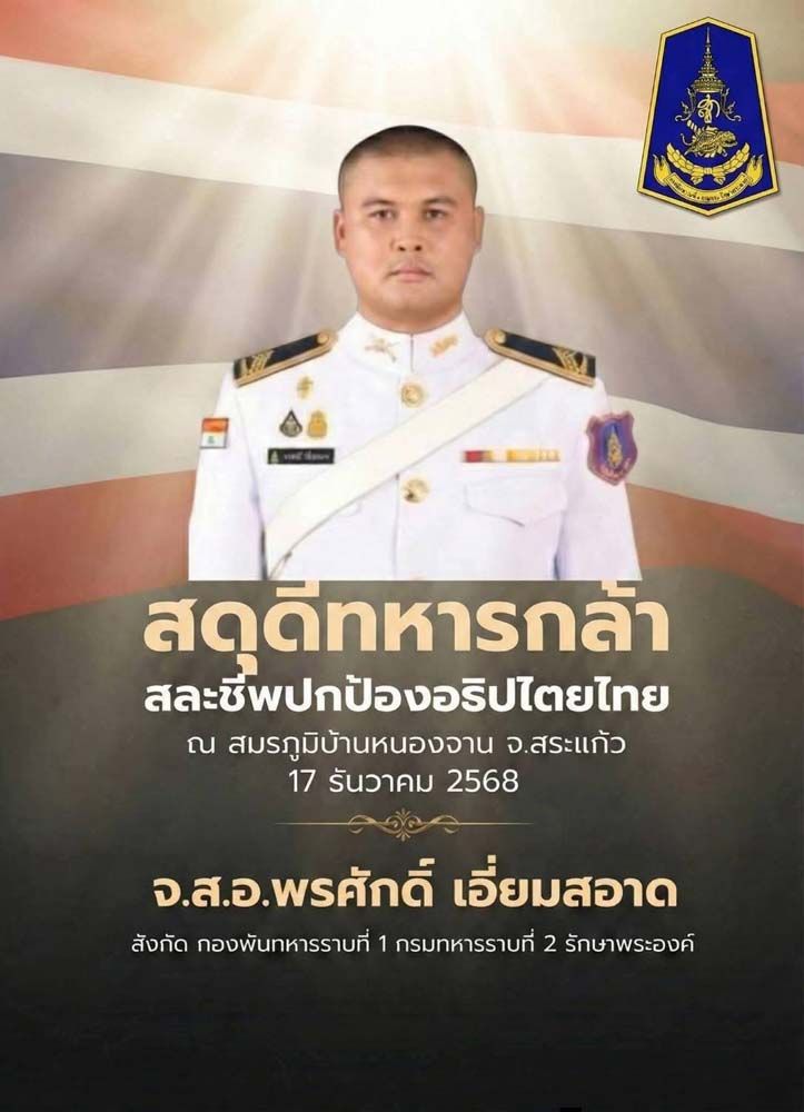 เมื่อเวลา 09.30 น วันที่ 18 ธันวาคม 2568 ผู้สื่อข่าวได้ลงพื้นที่ บ้านแห่งหนึ่ง ตำบลเขาพระ จังหวัดนครนายก พบนางเตือนใจ ลามนต์ อายุ 55 ปี เป็นแม่ยายของ จ.ส.อ.พรศักดิ์ เอี่ยมสะอาด ส่วนคุณชื่นกมล เอี่ยมสะอาด ภรรยา ได้ไปติดต่อทางราชการ ได้เตรียมการจัดสถานที่รับขบวนทหารกองเกียรติยศที่จะนำร่าง จ.ส.อ.พรศักดิ์ เอี่ยมสะอาด ทหารกล้า ที่ลละชีพปกป้องอธิปไตยไทย ณ สมรภูมิบ้านหนองจาน จังหวัดสระแก้ว วันที่ 17 ธันวาคม 2568 เป็นทำหาร กองพันทหารราบที่ 1 กรมทหารราบที่ 2 รัษาพระองค์ มาทำการน้ำหลวงอาบศพ ในวันที่ 18 ธันวาคม 2568 ที่บ้านจังหวัดนครนายก โดยมีหน่วยงานราชการ ทหาร ผู้นำหมู่บ้าน พี่น้องประชาชน ได้มาเตรียมความพร้อมจัดสถานที่