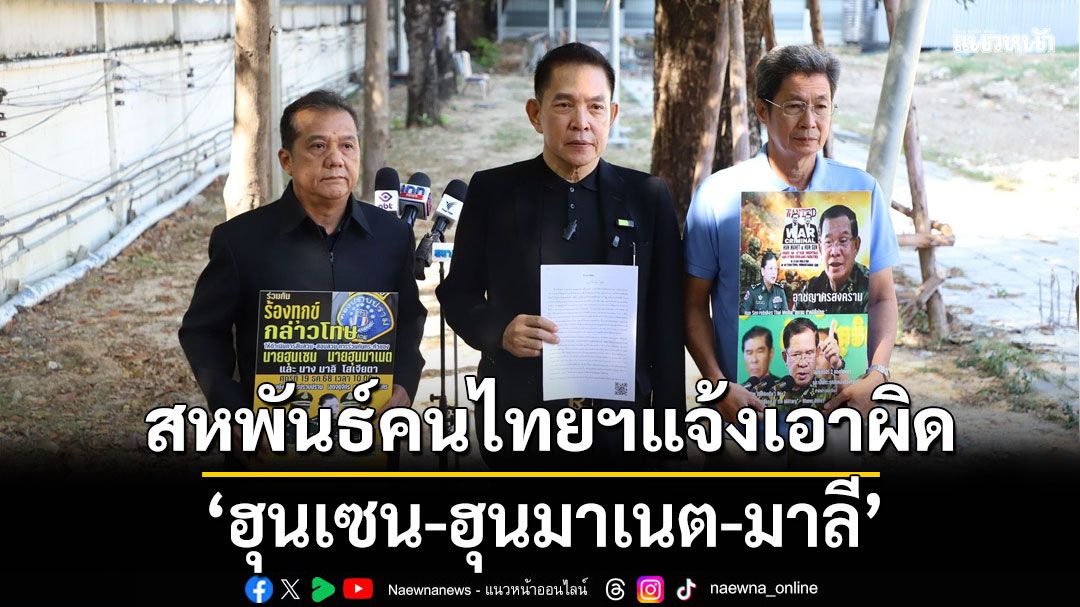 วันที่ 19 ธันวาคม 2568 เวลา 10.00 น. ที่กองบังคับการปราบปราม นายราเชน ตระกูลเวียง ประธานสหพันธ์คนไทยปกป้องสถาบันฯ พร้อมกลุ่มอาชีวะมีนบุรีรวมกว่า 10 คน เข้าแจ้งความกับตำรวจกองบังคับการปราบปราม เพื่อดำเนินคดีกับนายฮุน เซน ประธานวุฒิสภากัมพูชา , นายฮุน มาเนต นายกรัฐมนตรีกัมพูชา และพลโทหญิงมาลี โสเจียตา โฆษกกระทรวงกลาโหมกัมพูชา และดำเนินการตามขั้นตอนกฎหมายของประเทศไทยด้วยการส่งข้อมูลให้อัยการตรวจสอบ