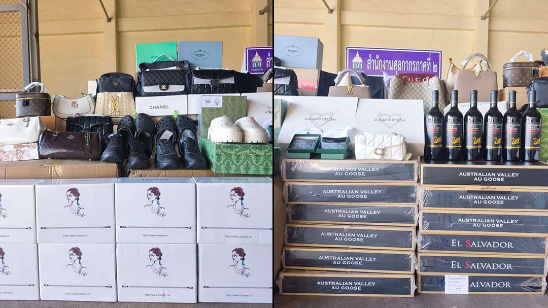 สำนักงานศุลกากรภาคที่ 2 จับกุมตรวจยึด กระเป๋า รองเท้า ละเมิดเครื่องหมายการค้า และไวน์ เมืองกำเนิดต่างประเทศ มูลค่าความเสียหายทางเศรษฐกิจรวมกว่า 65 ล้านบาท