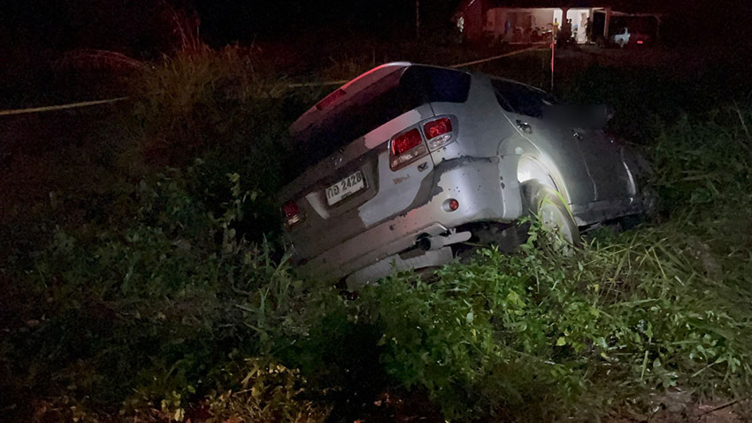 เมื่อถึงจุดเกิดเหตุซึ่งห่างจากบ้านประมาณ 3 กิโลเมตร คาดว่าคนร้ายที่ติดตามความเคลื่อนไหวอยู่ได้ขับรถประกบยิงในระยะเผาขน จนรถเสียหลักพุ่งตกข้างทางและเสียชีวิตทันที