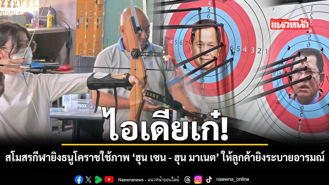 โคราชยิงหน้าแหกสโมสรกีฬายิงธนูจังหวัดนครราชสีมาจับเป้าหน้ารูปผู้นำเขมรฮุนเซน ฮุนมาเนต พร้อมพลโทหญิงมาลีและบอยอินฟูลให้ลูกค้ายิงระบายอารมณ์