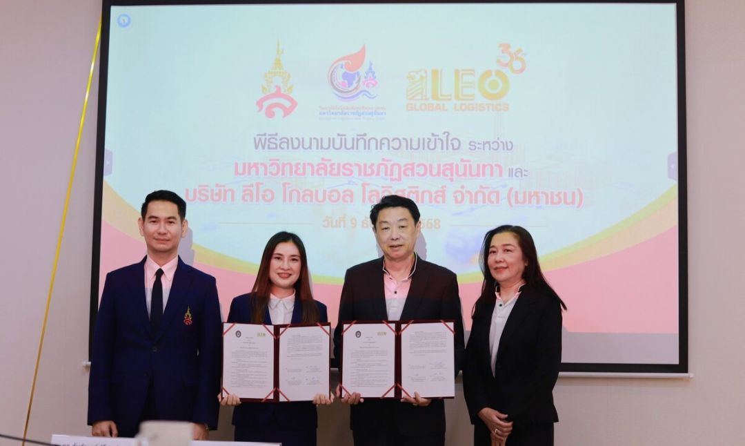 บริษัท ลีโอ โกลบอล โลจิสติกส์ จำกัด (มหาชน) (LEO) และวิทยาลัยโลจิสติกส์และซัพพลายเชน มหาวิทยาลัยราชภัฏสวนสุนันทา (SSRU) ได้ลงนามบันทึกข้อตกลงความร่วมมือทางวิชาการในโครงการ “ผลิตบัณฑิตปริญญาตรี สาขาวิชาการจัดการซัพพลายเชนธุรกิจ แขนงวิชาธุรกิจพาณิชยนาวี” มุ่งสร้างบุคลากรรุ่นใหม่ให้พร้อมเข้าสู่อุตสาหกรรมโลจิสติกส์ที่กำลังเติบโตอย่างรวดเร็ว โดยมี ผศ.ดร.ชณิชา หมอยาดี คณบดีวิทยาลัยโลจิสติกส์และซัพพลายเชน มหาวิทยาลัยราชภัฏสวนสุนันทา และนายเกตติวิทย์ สิทธิสุนทรวงศ์ ประธานเจ้าหน้าที่บริหาร LEO ร่วมลงนาม พร้อมประกาศความมุ่งมั่นร่วมกันในการสร้างบุคลากรคุณภาพให้กับภาคธุรกิจโลจิสติกส์ไทย รวมถึงเป็นการดำเนินธุรกิจตามแนว ESG และสร้างผลกระทบเชิงบวกที่ชัดเจนในมิติสังคม (S) มิติสิ่งแวดล้อม (E) และธรรมาภิบาล (G) ที่เป็นการดำเนินธุรกิจแบบยั่งยืนและมีส่วนร่วมในการพัฒนาสังคมอย่างแท้จริง