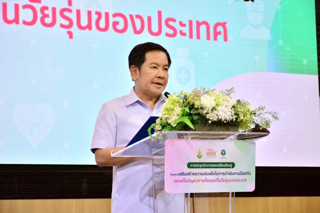 ด้าน ดร.นพ.ไพโรจน์ เสาน่วม รองผู้จัดการกองทุนสนับสนุนการสร้างเสริมสุขภาพ (สสส.) กล่าวว่า สสส.ดำเนินงานด้านการป้องกันและแก้ไขปัญหาการตั้งครรภ์ในวัยรุ่นมาอย่างต่อเนื่องตั้งแต่ปี 2554 สนับสนุนการพัฒนานโยบาย กลไก และรูปแบบการทำงานเชิงบูรณาการในหลายพื้นที่ ส่งผลให้อัตราการคลอดในวัยรุ่นของประเทศลดลง อย่างไรก็ตาม ยังมีความท้าทายในการบรรลุเป้าหมายอัตราการคลอดมีชีพในหญิงอายุ 15 - 19 ปี ไม่เกิน 15 ต่อพันประชากร ภายในปี 2570 จึงได้สนับสนุนสมาคมแพทย์สตรีแห่งประเทศไทยฯ ดำเนินโครงการเสริมสร้างความเข้มแข็งในการดำเนินงานป้องกันและแก้ไขปัญหาการตั้งครรภ์ในวัยรุ่นของประเทศใน 10 จังหวัดที่มีอัตราการคลอดสูงสุด เพื่อยกระดับกลไกการทำงานของจังหวัด ให้มีประสิทธิภาพและยั่งยืน