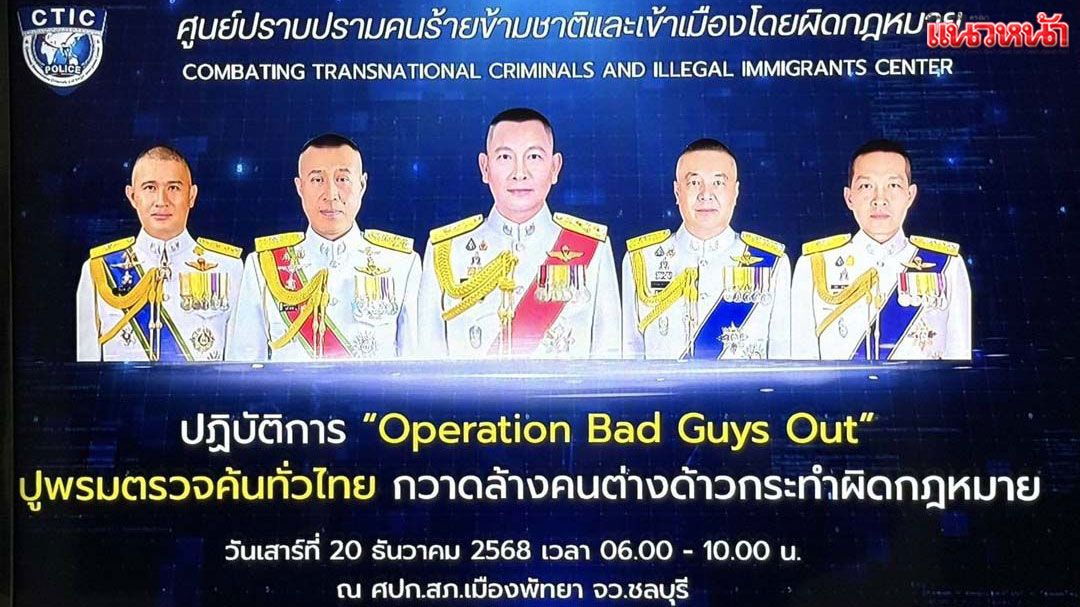 รองผบ.ตร.เปิดปฏิบัติการ “Operation Bad Guys Out” ปูพรมตรวจค้นทั่วไทย กวาดล้างคนต่างด้าวกระทำผิดก.ม. ยกระดับการรักษาความสงบเรียบร้อย และความมั่นคง ยันดำเนินการต่อเนื่องทุกเดือน