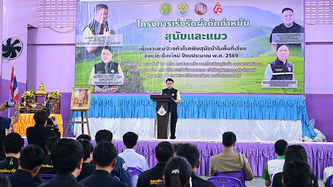 นายนเรศ ธำรงค์ทิพยคุณ รัฐมนตรีช่วยว่าการกระทรวงเกษตรและสหกรณ์ เปิดเผยภายหลังเป็นประธานเปิดโครงการเร่งรัดผ่าตัดทำหมันสุนัขและแมว เพื่อควบคุมโรคพิษสุนัขบ้าในพื้นที่เสี่ยง จังหวัดเชียงใหม่ ครั้งที่ 3 ประจำปีงบประมาณ พ.ศ.2569 ณ โรงเรียนแม่แจ่ม ตำบลช่างเคิ่ง อำเภอแม่แจ่ม จังหวัดเชียงใหม่ ว่าโครงการเร่งรัดผ่าตัดทำหมันสุนัขและแมว เพื่อควบคุมโรคพิษสุนัขบ้าในพื้นที่เสี่ยง อยู่ภายใต้ “โครงการสัตว์ปลอดโรค คนปลอดภัยจากโรคพิษสุนัขบ้า” ตามพระปณิธานของศาสตราจารย์ ดร.สมเด็จพระเจ้าน้องนางเธอ เจ้าฟ้าจุฬาภรณวลัยลักษณ์ อัครราชกุมารี กรมพระศรีสวางควัฒน วรขัตติยราชนารี โดยมีวัตถุประสงค์หลัก เพื่อลดจำนวนสุนัขและแมวที่ไร้ที่พึ่ง ป้องกันและควบคุมโรคพิษสุนัขบ้า ส่งเสริมสวัสดิภาพสัตว์ และยกระดับคุณภาพชีวิตของประชาชน