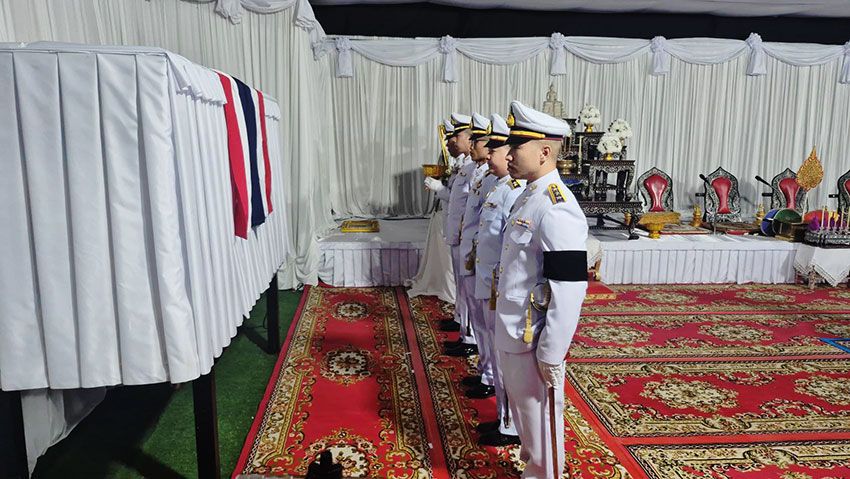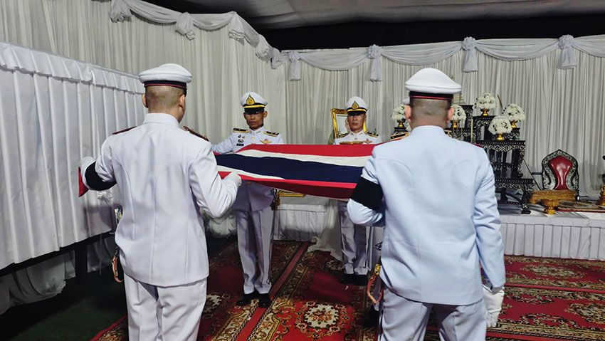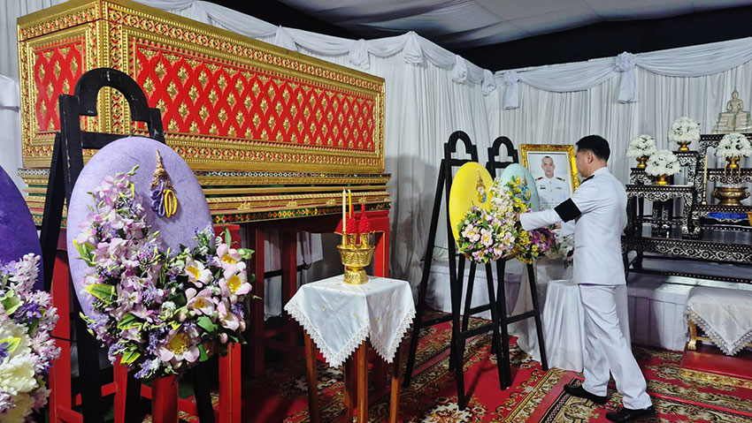 21 ธ.ค.68 เวลา 17.45 น. ที่วัดห้วยปอ ต.ปังกู อ.ประโคนชัย จ.บุรีรัมย์ พระบาทสมเด็จพระเจ้าอยู่หัว ทรงพระกรุณาโปรดเกล้าโปรดกระหม่อมให้ นายปิยะ ปิจนำ ผู้ว่าราชการจังหวัดบุรีรัมย์ เชิญพวงมาลาของพระบาทสมเด็จพระเจ้าอยู่หัว สมเด็จพระนางเจ้าสิริกิติ์ พระบรมราชินีนาถ พระบรมราชชนนีพันปีหลวง และสมเด็จพระนางเจ้า ฯ พระบรมราชินี วางที่หน้าหีบศพ จ่าสิบเอกสำเริง คลังประโคน กำลังพลที่เสียชีวิตจากการปฏิบัติหน้าที่ในสถานการณ์ความไม่สงบพื้นที่จังหวัดชายแดนไทย-กัมพูชา