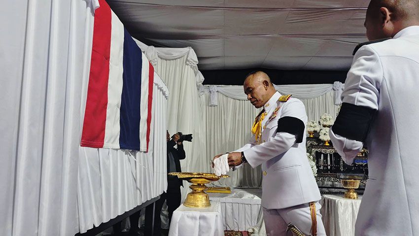 ในหลวง พระราชทานน้ำหลวงอาบศพ วางพวงมาลา 'จ่าสิบเอก สำเริง คลังประโคน'