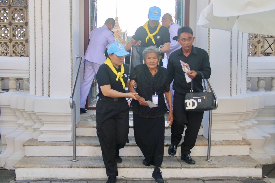 โดยมีเจ้าหน้าที่สํานักพระราชวัง จิตอาสา 904 และเจ้าหน้าที่หน่วยงานต่างๆร่วมปฏิบัติหน้าที่ดูแลให้คำแนะนำและอำนวยความสะดวกแก่ผู้สูงอายุ ผู้พิการที่นั่งวิลแชร์และประชาชนตลอดเส้นทาง เพื่อให้การเข้ากราบถวายบังคมพระบรมศพฯเป็นไปด้วยความเรียบร้อยและสมพระเกียรติ และมีบริการน้ำดื่ม บริการ"ชัตเตอร์ บัส" รับ-ส่ง บริเวณทางออกหน้าประตูเทวาภิรมย์ไปยังท้องสนามหลวง
