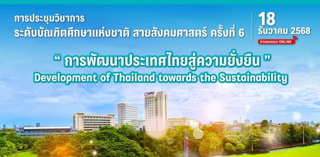 คณะการท่องเที่ยวและการโรงแรม และหลักสูตรปริญญาโท สาขาการจัดการการท่องเที่ยว มหาวิทยาลัยธุรกิจบัณฑิตย์ (DPU) เป็นเจ้าภาพจัดการประชุมวิชาการระดับบัณฑิตศึกษาแห่งชาติ สายสังคมศาสตร์ ครั้งที่ 6 ภายใต้หัวข้อ “การพัฒนาประเทศไทยสู่ความยั่งยืน (Development of Thailand towards the Sustainability)” เมื่อวันที่ 18 ธันวาคม 2568 ในรูปแบบการประชุมออนไลน์ (Online Conference) เพื่อเปิดเวทีให้นักศึกษาระดับบัณฑิตศึกษาและนักวิชาการจากทั่วประเทศได้นำเสนอและเผยแพร่ผลงานวิจัยสู่สาธารณะในระดับชาติ