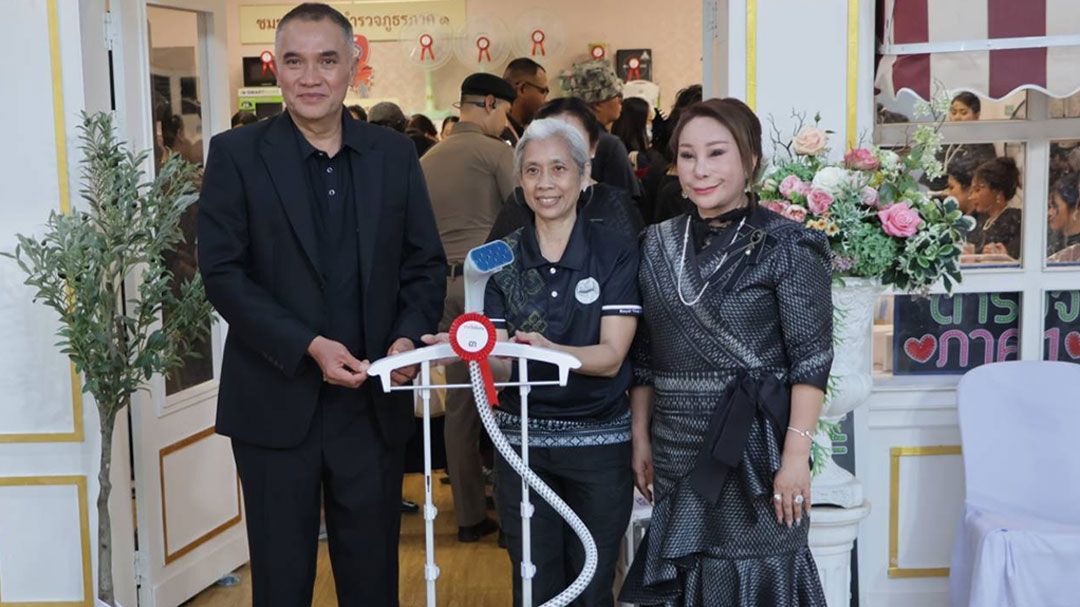 ต่อมา ร่วมให้การต้อนรับ พล.ต.อ.กิตติ์รัฐ พันธุ์เพ็ชร์ ผบ.ตร. และ คุณกนกวรรณ พันธุ์เพ็ชร์ นายกสมาคมแม่บ้านตำรวจ ซึ่งเข้าตรวจเยี่ยมและร่วมกิจกรรมของร้านสมาคมแม่บ้านตำรวจ งานกาชาด ประจำปี 2568
