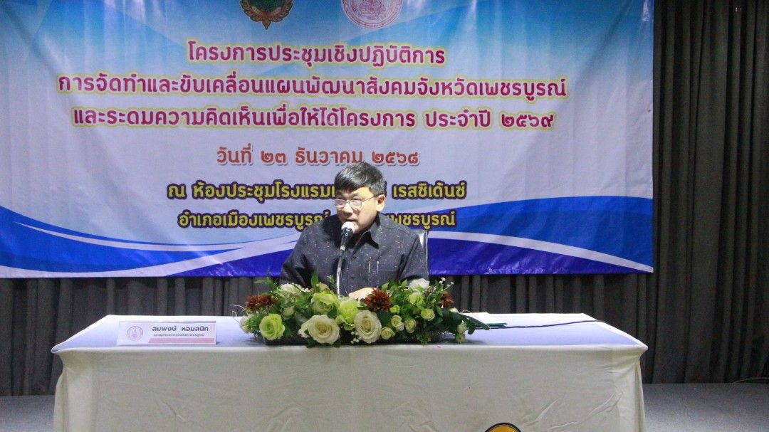 วันที่ 23 ธันวาคม 2568 ที่โรงแรมเอสอาร์ เรสซิเดนซ์ นายสมพงษ์ หอมสนิท รองผู้ว่าราชการจังหวัดเพชรบูรณ์ เป็นประธานเปิดการประชุมเพื่อขับเคลื่อนและจัดทำแผนพัฒนาสังคมจังหวัด โดยมีนางสาวศิษยา จันทภา พัฒนาสังคมและความมั่นคงของมนุษย์จังหวัดเพชรบูรณ์ พร้อมด้วยผู้แทนหน่วยงานรัฐ องค์กรปกครองส่วนท้องถิ่น และภาคประชาชนเข้าร่วมอย่างพร้อมเพรียง