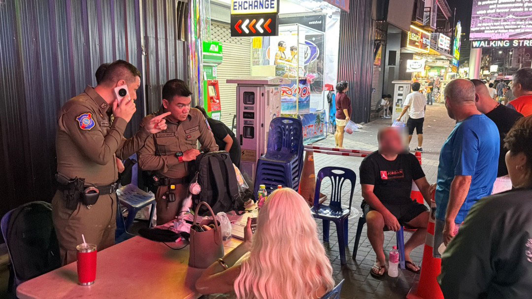 โดยเหตุการณ์เกิดขึ้น ขณะที่เจ้าหน้าที่สายตรวจได้รับแจ้งจากนักท่องเที่ยวว่าเกิดเหตุชุลมุนและกระชากทรัพย์บริเวณหน้าตู้แลกเงินภายในถนนวอล์คกิ้งสตรีท เมื่อไปถึงพบ Mr.Chamam อายุ 52 ปี สัญชาติอิสราเอล กำลังมีปากเสียงกับสาวประเภทสองรายหนึ่ง โดยยืนยันว่าถูกล้วงกระเป๋ากางเกง