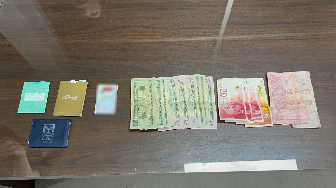 ต่อมา เจ้าหน้าที่ได้ตรวจสอบพื้นที่ใกล้เคียงจนพบผู้ต้องหาอีกรายกำลังก้มเก็บเงินอยู่ด้านหลังตู้แลกเงิน จึงได้เชิญตัวมาสอบสวน ซึ่งผู้เสียหายยืนยันได้ทันทีว่าเงินดังกล่าวเป็นของตนที่ถูกลักไป จากการจับกุมเจ้าหน้าที่สามารถยึดเงินสดได้หลายสกุลเงิน รวมมูลค่าเป็นจำนวนมาก ดังนี้ เงินไทย 1,200 บาท , เงินดอลลาร์สหรัฐ 300 ดอลลาร์ และเงินเชเขลอิสราเอล 160 เชเขล