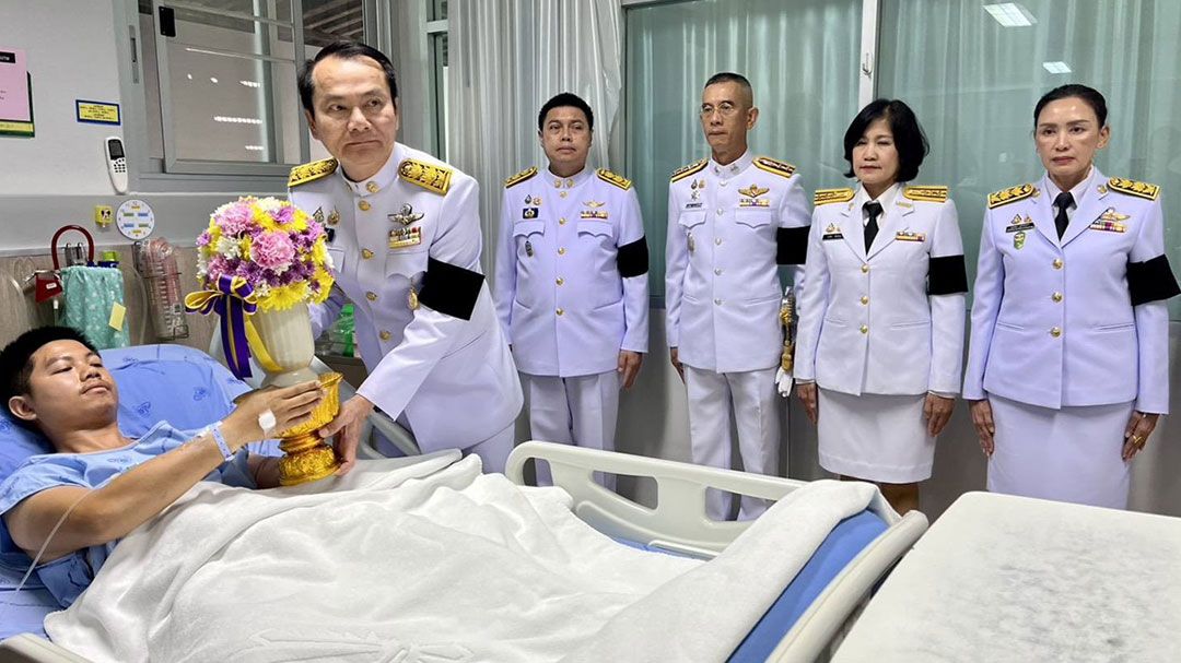 'ในหลวง'โปรดเกล้าฯให้ผู้ว่าฯอุบลราชธานี เชิญดอกไม้และตะกร้าสิ่งของพระราชทานไปมอบกำลังพลที่บาดเจ็บจากชายแดน และทรงรับไว้เป็นคนไข้ในพระบรมราชานุเคราะห์