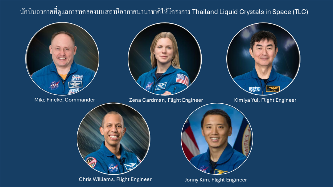 วันนี้ที่รอคอย เพย์โหลด " TLC " (Thailand Liquid Crystals in Space) สัญชาติไทย สำหรับการทดลองผลึกเหลว (Liquid Crystals) ในอวกาศ ที่พัฒนาโดยนักวิจัยไทย ได้รับการติดตั้งเพื่อทำการทดลองโดยนักบินอวกาศนาซา Mike Fincke เมื่อวันที่ 1 ธันวาคม 2568 เวลา 9.30 น. ตามเวลามลรัฐเท็กซัส โดย นักบินอวกาศ Mike Fincke ได้ทำการติดตั้งเพย์โหลด TLC เข้าสู่กล้องจุลทรรศน์ KERMIT (KEyence Research Microscope Testbed) บนสถานีอวกาศนานาชาติ (ISS) และทำการเปลี่ยนฟิลเตอร์ของกล้องจุลทรรศน์ให้เป็นฟิลเตอร์ของโครงการ TLC ที่ส่งขึ้นไปพร้อมกับเพย์โหลด