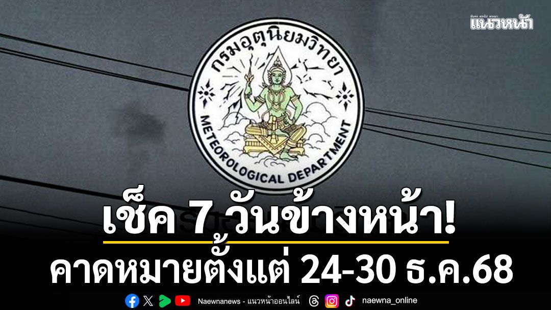 เมื่อเวลา 12.00 น.วันที่ 24 ธันวาคม 2568 กรมอุตุนิยมวิทยา คาดหมายอากาศทั่วไป พยากรณ์อากาศ 7 วันข้างหน้า ระหว่างวันที่ 24 - 30 ธันวาคม 2568 ดังนี้