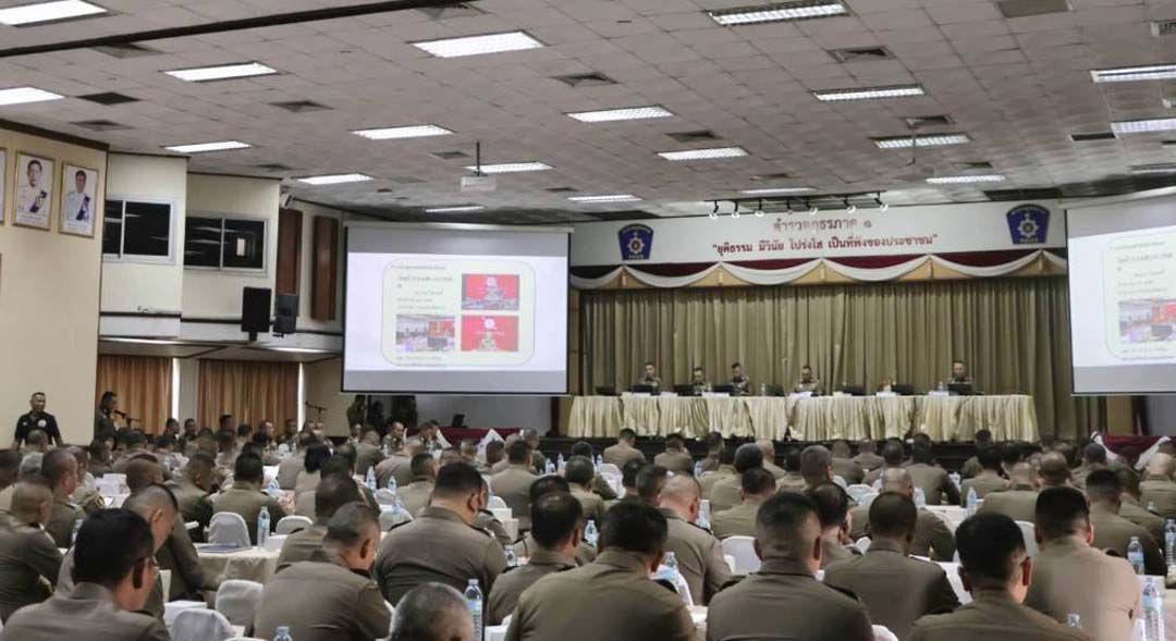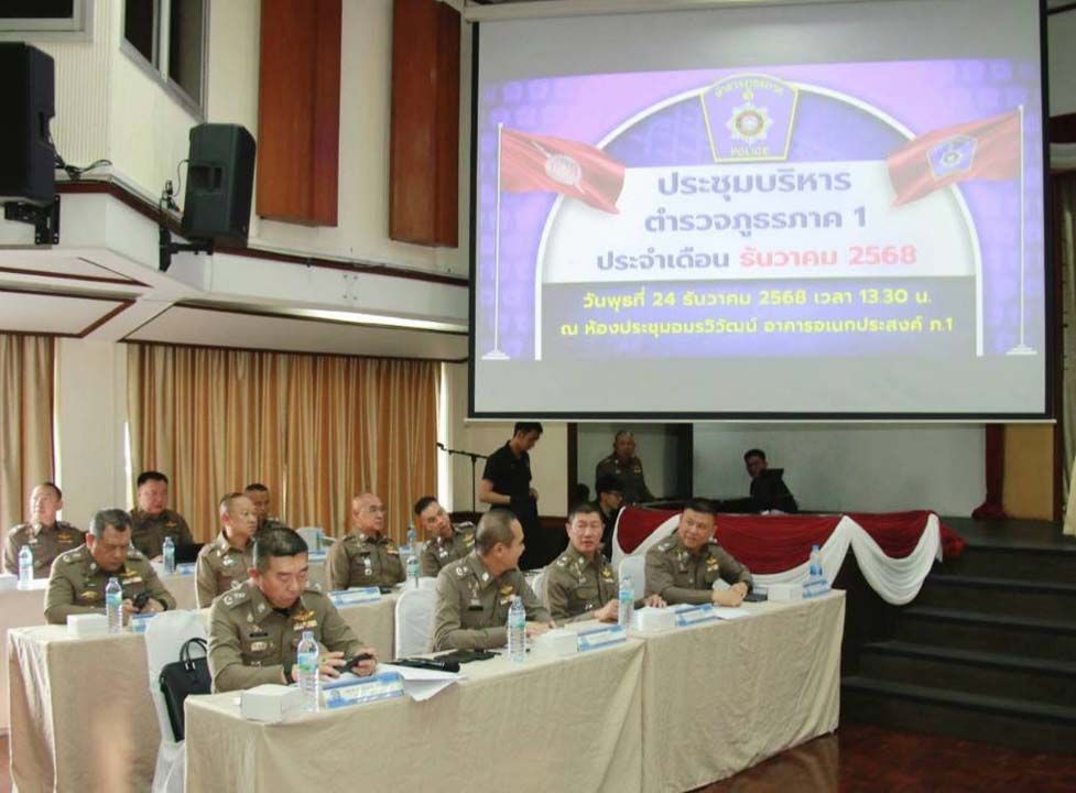 24 ธันวาคม 2568 พล.ต.ต.อรรถพล อนุสิทธิ์ รอง ผบช.ภ.1/โฆษก ตร.ภ.1 , พล.ต.ต.ภัคพงศ์ สายอุบล ผบก.อก.ภ.1/รองโฆษก ตร.ภ.1 และ พล.ต.ต.ฤทธินันท์ ปุ๋ยพันธวงศ์ ผบก.กค.ภ.1/รองโฆษก ตร.ภ.1 เปิดเผยว่า วันนี้ (24 ธ.ค.68) พล.ต.ท.วัฒนา ยี่จีน ผบช.ภ.1 เป็นประธานการร่วมประชุมบริหารตำรวจภูธรภาค 1 (บช.ภ.1) ประจำเดือน ธ.ค.68