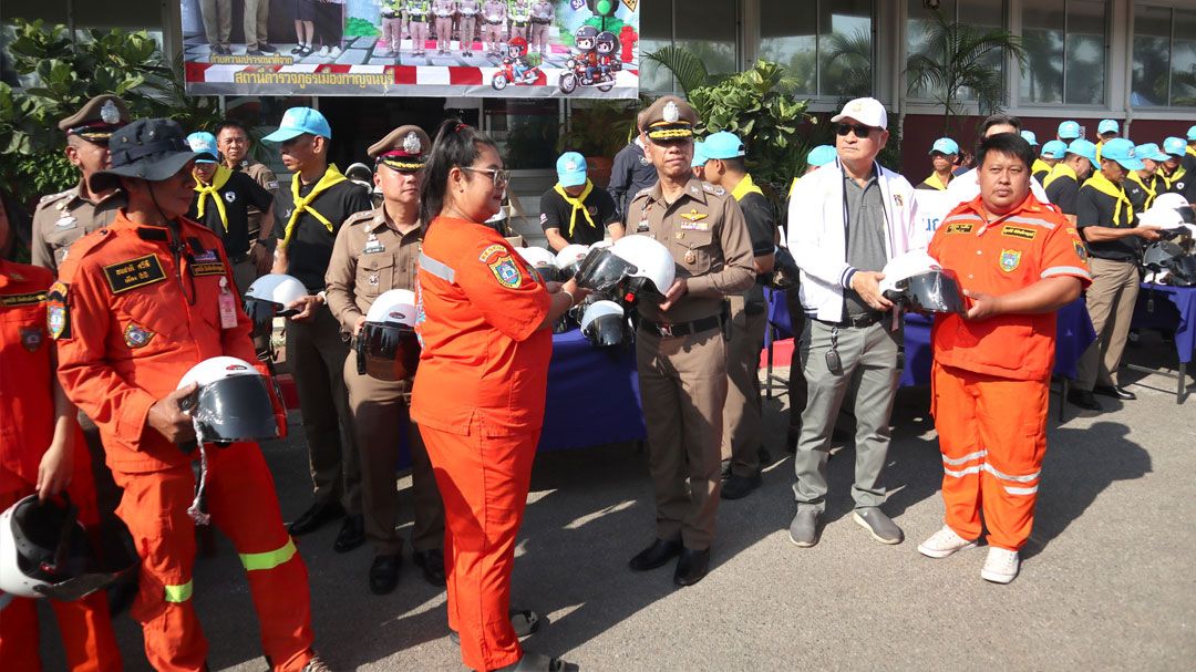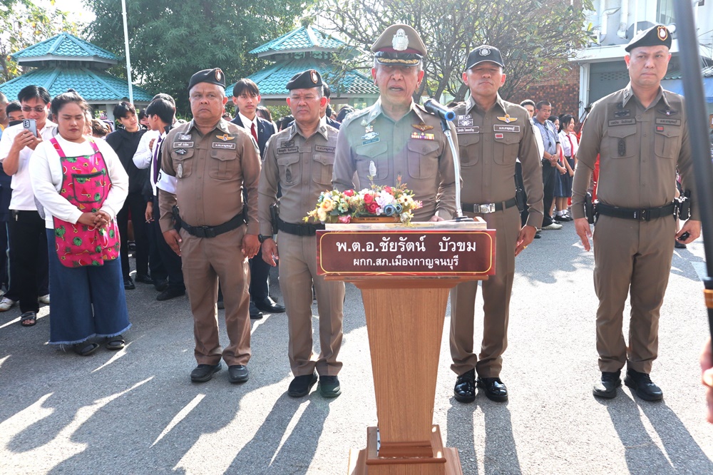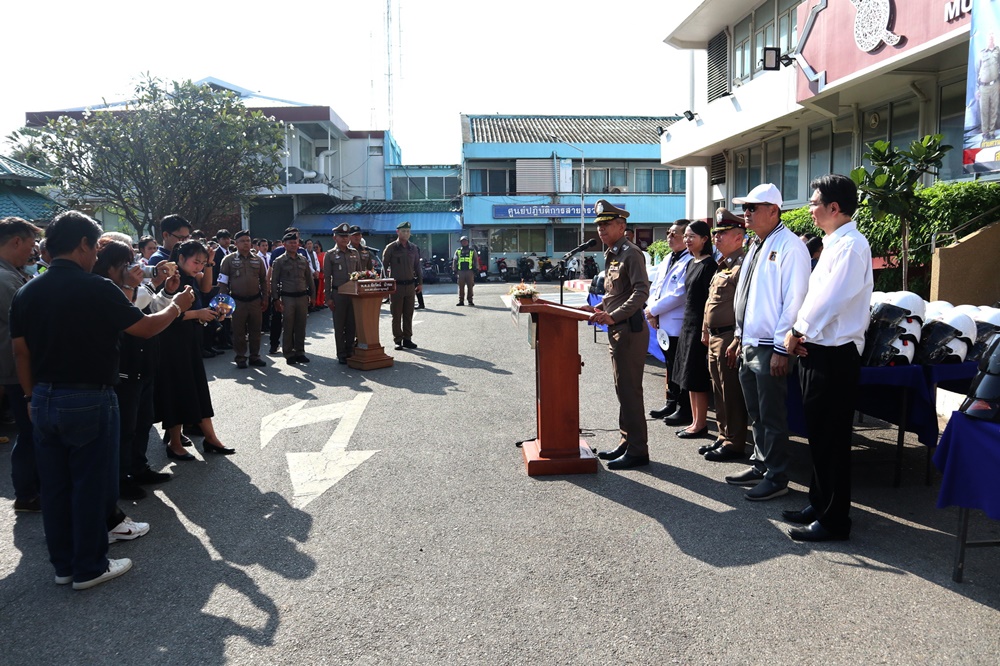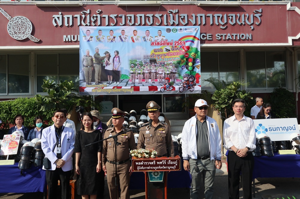 เมื่อเวลา 09.30 น.วันนี้ 25 ธ.ค.68 ที่สถานีตำรวจภูธรเมืองกาญจนบุรี พล.ต.ต.พศวีร์ เรืองภู่ ผบก.ภ.จว.กาญจนบุรี เป็นประธานโครงการ แจกหมวกนิรภัยด้วยใจ สร้างความปลอดภัยประชาชน เพื่อลดความรุนแรงจากการเกิดอุบัติตามท้องถนนทั้งผู้ขับขี่และนั่งซ้อนท้ายในพื้นที่รับผิดชอบ ในช่วงเทศกาลวันคริสต์มาสและฉลองส่งท้ายปีเก่าต้อนรับปีใหม่ 2568 โดยมี พ.ต.อ.ชัยรัตน์ บัวขม ผกก.สภ.เมืองกาญจนบุรี กล่าวรายงาน มี พ.ต.อ.สันทัด ลวางกูล รอง ผบก.ภ.จว.กาญจนบุรี นายพรชัย วารีทิพย์ขจร ประธานกองทุนสวัสดิการสื่อมวลชนจังหวัดกาญจนบุรี พ.ต.ท.โชคชัย ไทยเจริญ รอง ผกก.จราจร สภ.เมืองกาญจนบุรี เจ้าหน้าที่ ตร.จราจร สภ.เมืองกาญจนบุรี และผู้ให้การสนับสนุนประกอบด้วย รพ.พหลพลพยุหเสนา รพ.สินแพทย์กาญจนบุรี รพ.ธนกาญจน์ บริษัทสามัคคีที่ดินและเคหะ จำกัด และ สภ.เมืองกาญจนบุรี เข้าร่วม มีประชาชน รวมถึงผู้ขับขี่รถจักรยานยนต์รับจ้าง และนักเรียนจากหลานสถาบันกว่า 600 คน พร้อมใจรับมอบหมวกนิรภัย
