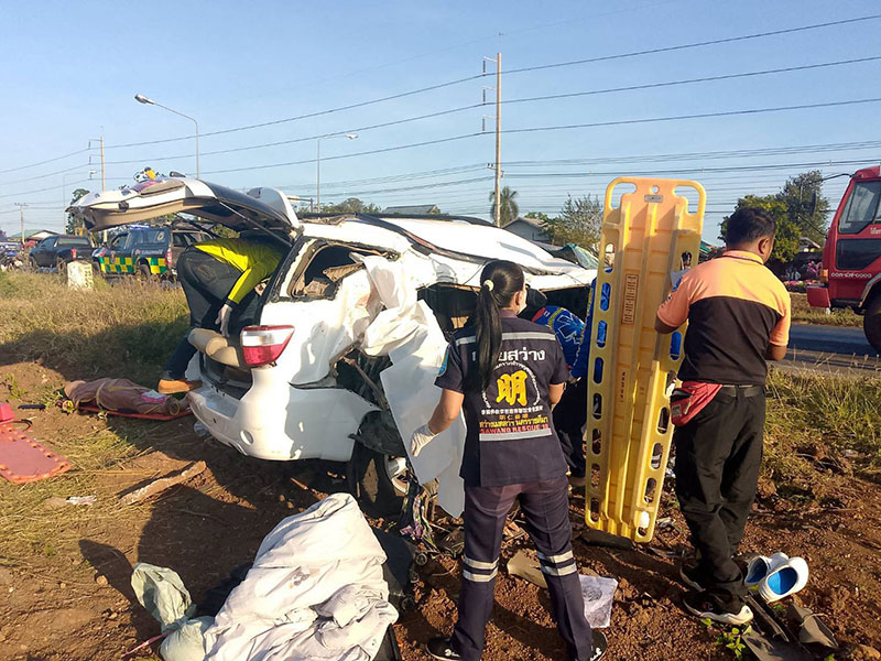 สำหรับรายชื่อผู้บาดเจ็บได้แก่ 1.น.ส รัชนก มัดทะปะนัง , 2.นางศศิธร แพงวงศ์ ส่วนรายชื่อผู้เสียชีวิต 1.นางคำนาง ศรีจำปา , 2.นายแสงทอง ทอนมาตย์(คนขับฟอร์จูนเนอร์เสียชีวิตที่ รพ.) , 3.นายเกษร ศรีจำปา , 4.นางหนูพร มัดทะปะนัง