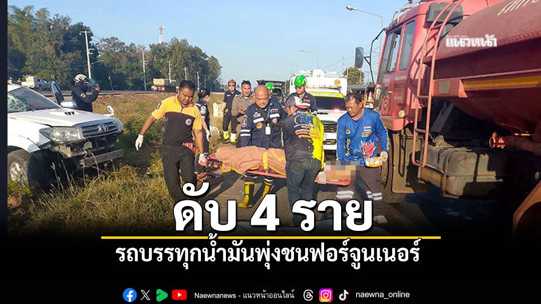 25 ธันวาคม 2568 ผู้สื่อข่าวรายงานว่า พ.ต.อ.ชวภณ จันทเมนชัย ผกก.สภ.หนองบุญมาก จ.นครราชสีมา ได้รับแจ้งเกิดอุบัติเหตุบนถนนสายโชคชัย-เดชอุดม พื้นที่ อ.หนองบุญมาก จึงพร้อมด้วยเจ้าหน้าที่ตำรวจ และประสานกู้ภัยสว่างเมตตาธรรมสถานจุดบริการอำเภอหนองบุญมากนำกำลังเข้าตรวจสอบอุบัติเหตุหลังได้รับแจ้งว่า เมื่อเวลา ประมาณ 06.30 น. ได้เกิดอุบัติเหตุรถบรรทุกน้ำมันปืนข้ามเกาะกลางถนนชนเข้ากับรถฟอร์จูนเนอร์ ที่บริเวณถนนสาย 24 ต.แหลมทอง อ.หนองบุญมาก จ.นครราชสีมา โดยในที่เกิดเหตุพบรถฟอร์จูนเนอร์สีขาวสภาพรถด้านขวานั้นพังยับเยินด้านในพบผู้เสียชีวิตทั้งหมด 3 ราย บาดเจ็บอีก 3 ราย เจ้าหน้าที่กู้ภัยเร่งนำตัวผู้บาดเจ็บส่งโรงพยาบาลหนองบุญมาก และส่งไปรักษาต่อที่โรงพยาบาลมหาราชนครราชสีมา