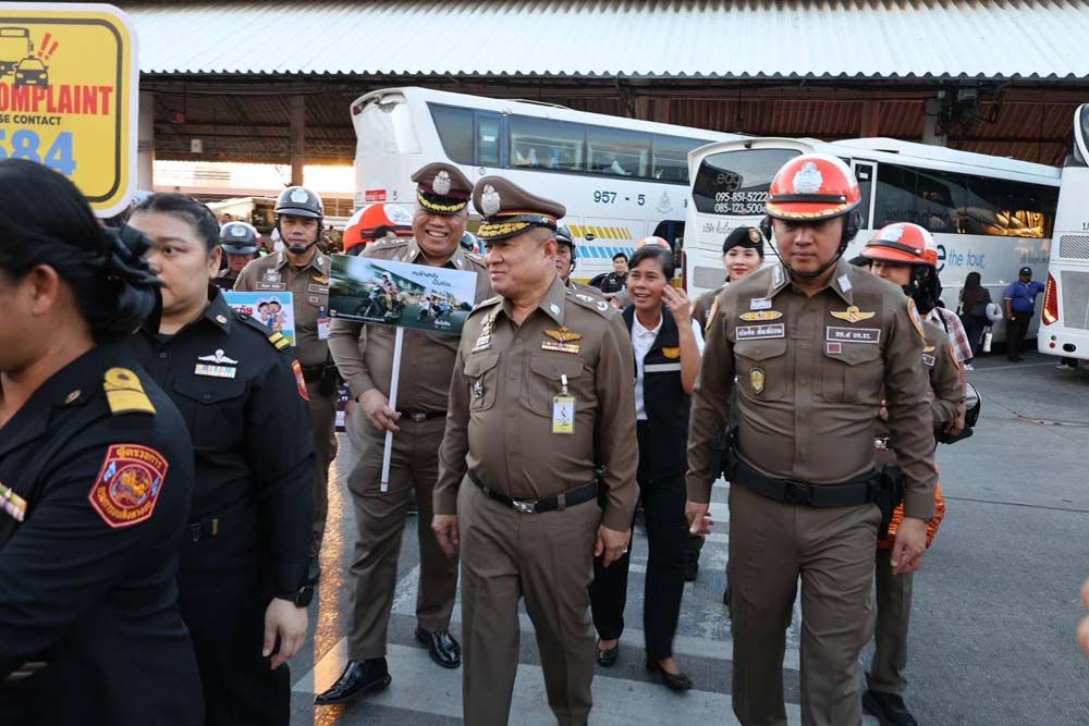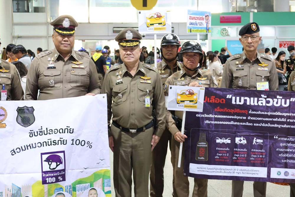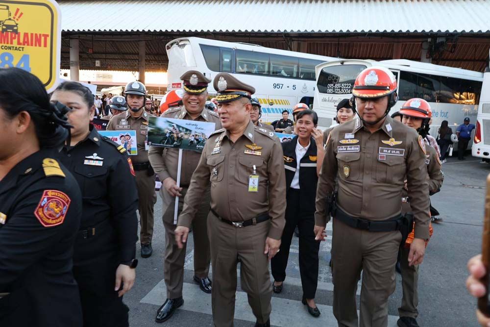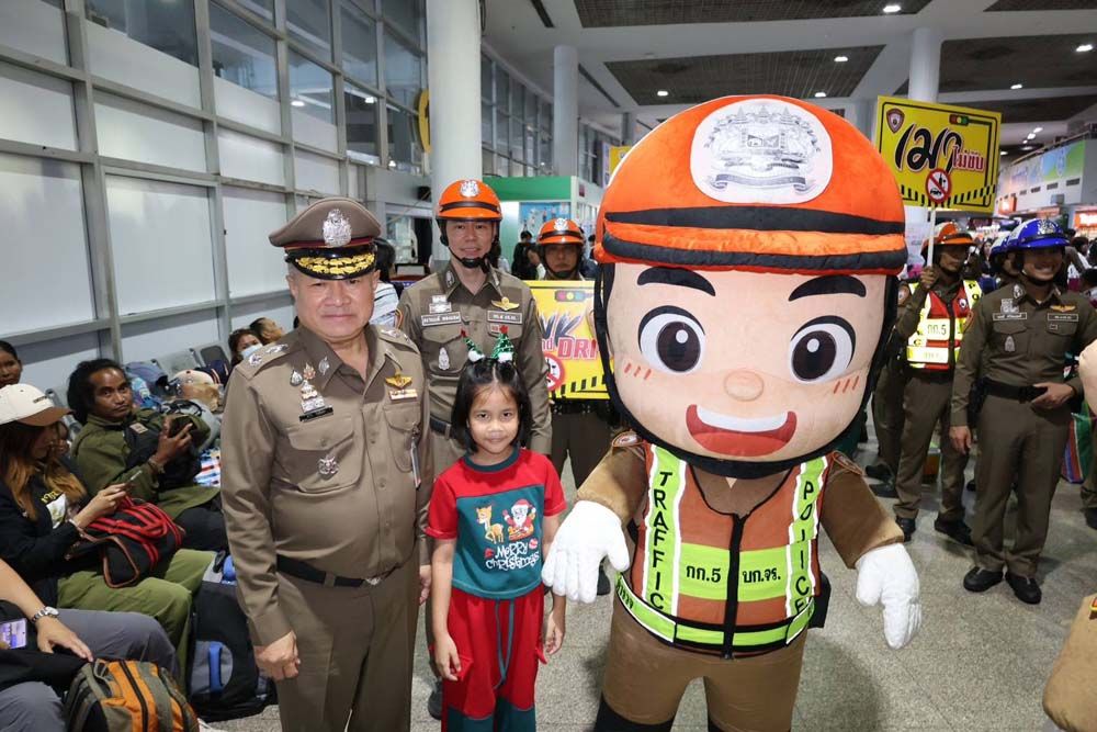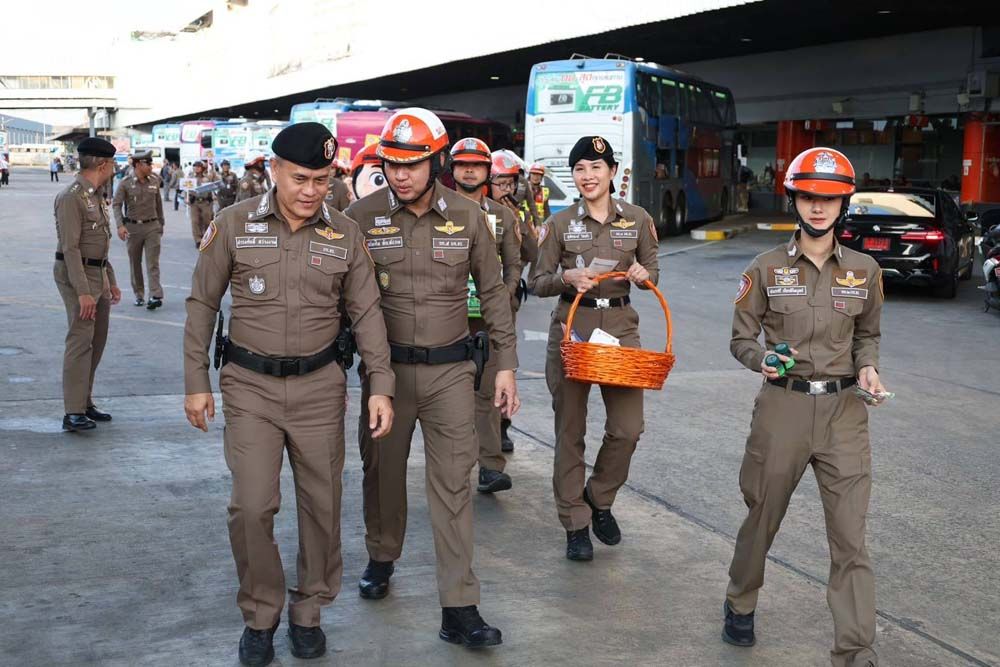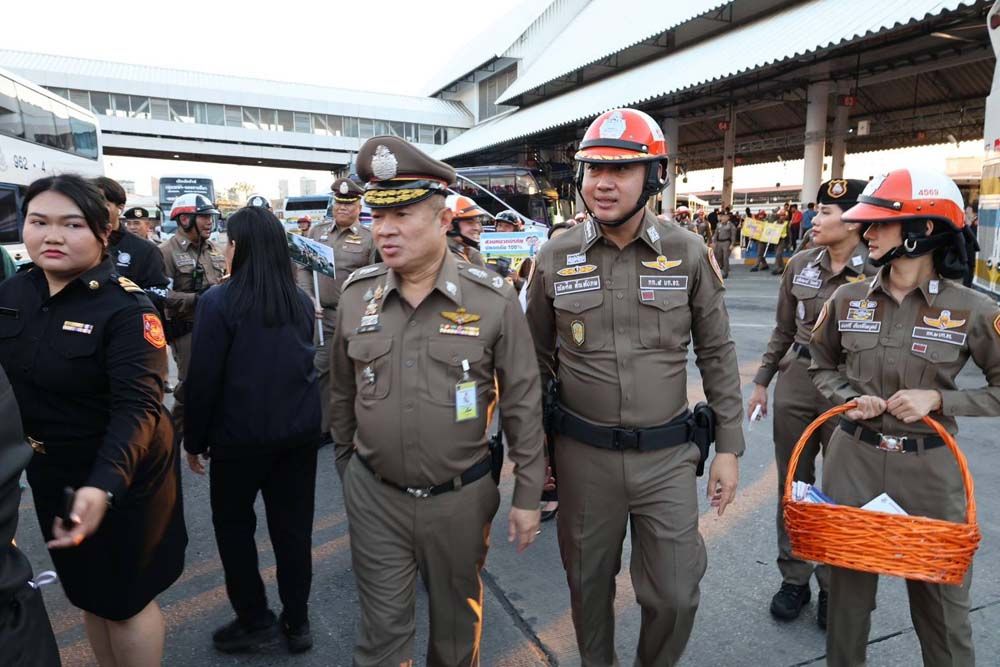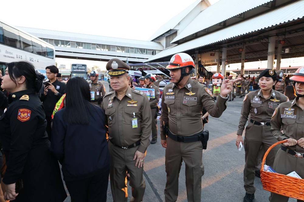 วันที่ 26 ธันวาคม 2568 ที่สถานีขนส่งผู้โดยสารกรุงเทพฯ (จตุจักร) หมอชิต 2 พล.ต.ต.ธวัช วงศ์สง่า รอง ผบช.น.พร้อมด้วย พล.ต.ต.ดำรงศักดิ์ สว่างงาม ผบก.จร. พ.ต.อ.ฐิรวิทย์ บุษบัน รอง ผบก.จร. พ.ต.อ.ณัทศิต สัณห์ปภพ ผกก.5 บก.จร. พ.ต.ท.ทศพร กลีบแก้ว รอง ผกก.5 บก.จร. พ.ต.อ.เรวัฎ นูมหันต์ ผกก.1 บก.จร. พ.ต.ท.มนตรี ศรีวัฒนฤทธิ์ รอง ผกก.6 บก.จร.ปฏิบัติหน้าที่ตรวจความเรียบร้อยภายในสถานีขนส่งหมอชิต 2 พร้อมร่วมกิจกรรมรณรงค์ "เมาไม่ขับ" ให้กับผู้ขับขี่รถโดยสารสาธารณะ และแจกขนม ลูกอม เครื่องดื่มแบรนด์ ให้กับประชาชนที่เดินทางกลับภูมิลำเนา