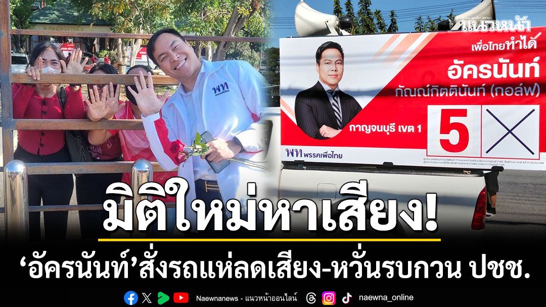 มิติใหม่หาเสียง! ‘อัครนันท์’ ผู้สมัคร สส.กาญจน์ฯ เขต1 สั่งรถแห่ลดเสียง-ห้ามวิ่งเช้า-เย็น หวั่นรบกวนเวลาพักผ่อนประชาชน