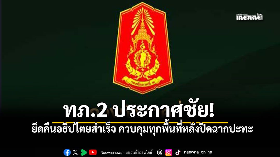 กองทัพภาคที่ 2 สรุปสถานการณ์ชายแดนไทย–กัมพูชา (27 ธ.ค.) ช่วงเช้ายังคงมีการปะทะหนักในหลายพื้นที่ ก่อนสั่งหยุดยิงเที่ยงวัน ทหารไทยควบคุมได้ทั้งหมดทุกพื้นที่ ที่เป็นพื้นที่ของประเทศไทยที่ยึดคืนกลับมาได้