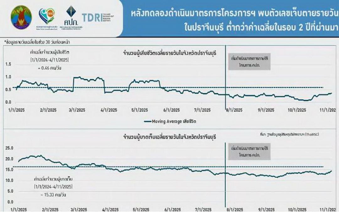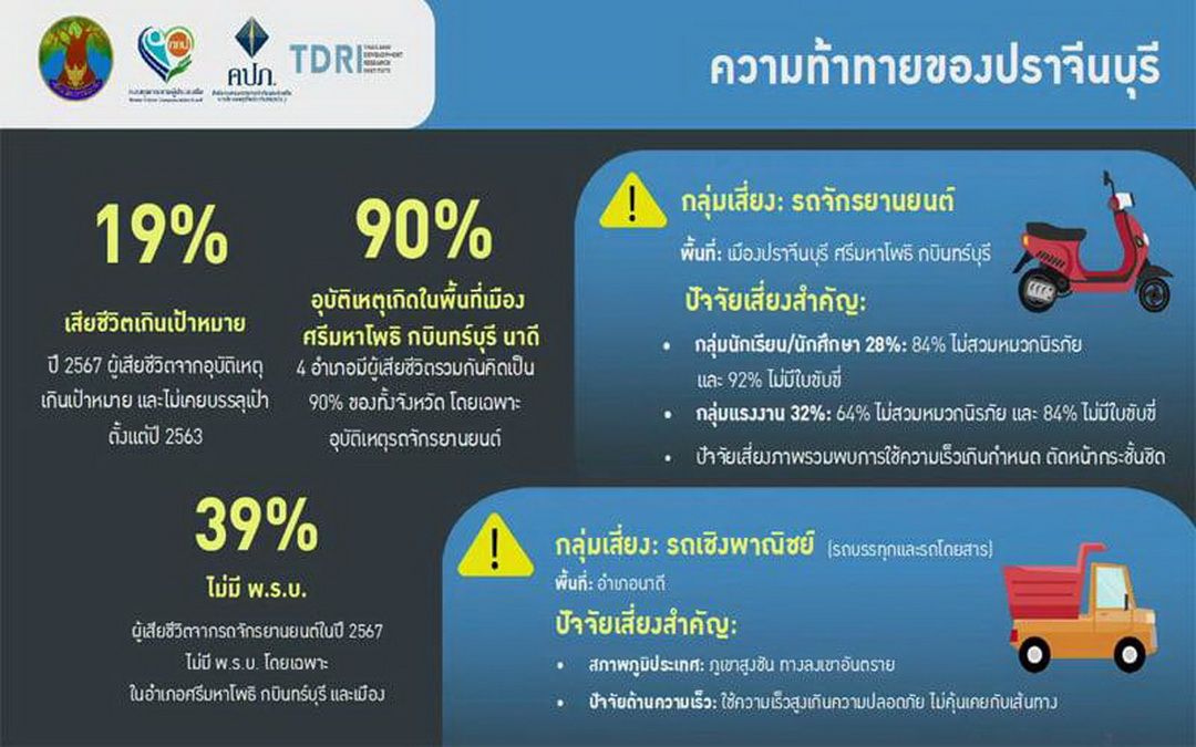 ย้อนไปเมื่อเดือน เม.ย. 2568 สถาบันวิจัยเพื่อการพัฒนาประเทศไทย (TDRI) ได้ร่วมกับสำนักงานคณะกรรมการกำกับและส่งเสริมการประกอบธุรกิจประกันภัย (คปภ.) และภาคีเครือข่ายอีกหลายองค์กร จัดงานแถลงข่าว “ปราจีนยืนหนึ่ง ถนนปลอดภัย อุ่นใจด้วยการประกันภัย” ภายใต้ “โครงการสร้างพื้นที่ต้นแบบด้านความปลอดภัยทางถนน และการรณรงค์ประกันภัยรถภาคบังคับ ปี 2568” ซึ่งในเวลานั้น “ทีมงาน นสพ.แนวหน้า” ได้นำเสนอข่าวมาแล้วครั้งหนึ่ง (สกู๊ปแนวหน้า : ลดความสูญเสียบนถนน เป้าที่ท้าทายของ‘ปราจีนบุรี’ , หน้า 5 ฉบับวันเสาร์ที่ 26 เม.ย. 2568)