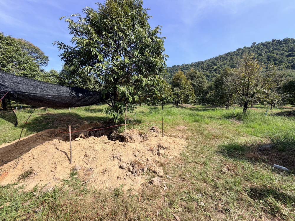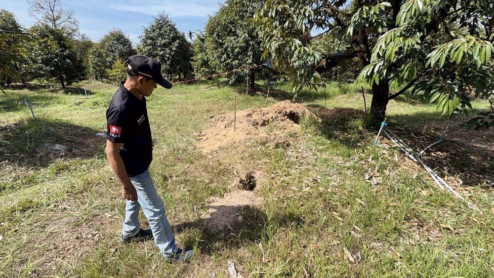 โดยจุดแรก ตกอยู่ในสวนทุเรียนของชาวบ้านที่หากจากเขาบรรทัดเพียง 500 เมตร และห่างพื้นที่ปะทะประมาณ 2.5 กิโลเมตร ซึ่งเป็นกระสุนปืนใหญ่ที่ยิงตกลงใกล้ต้นทุเรียน แต่หัวกระสุนปืนใหญ่ยังไม่ระเบิด โดยเจ้าหน้าที่ได้นำเชือกมากั้นพื้นที่ห้ามผู้ไม่เกี่ยวข้องเข้าพื้นที่ ขณะที่ต้นทุเรียนบางต้นออกลูกแล้วรอเก็บเกี่ยวผลผลิตในเดือนมกราคม บางต้นออกดอก ออกลูกแล้ว
