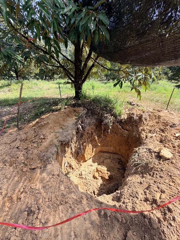 วันที่ 29 ธันวาคม 2568 นายอัมพร อาชีวะ ผู้ช่วยผู้ใหญ่บ้านหมู่ 3 บ้านหนองรี ต.ชำราก อ.เมือง จ.ตราด พาผู้สื่อข่าวสำรวจหลุมระเบิด 2 หลุม จากกระสุนปืนใหญ่จากฝั่งกัมพูชา ที่ยิงตกมายังพื้นที่บ้านหนองรี ซึ่งทั้ง 2 หลุม กระสุนปืนใหญ่ยังไม่ระเบิดรอการเก็บกู้
