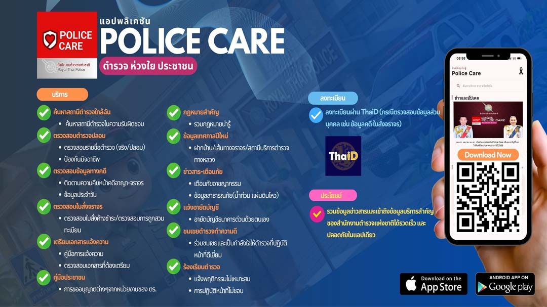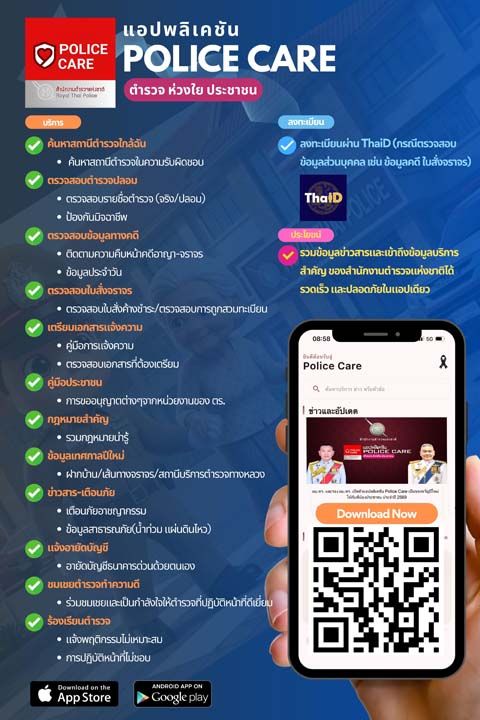รอง ผบ.ตร.ระบุว่า แอปพลิเคชัน Police Care ทำหน้าที่เป็น "หน้าหลัก บริการประชาชน" รวมฟังก์ชันที่ประชาชนใช้งานบ่อย อาทิ การค้นหาบริการและข่าวสาร การติดตามข่าวและประกาศสำคัญจากสำนักงานตำรวจแห่งชาติ การเตรียมตัวเข้าแจ้งความ การให้ความรู้ด้านกฎหมายที่ประชาชนควรรู้ รวมถึงข้อมูลสถานีตำรวจและการติดต่อสายด่วนต่าง ๆทั่วประเทศ