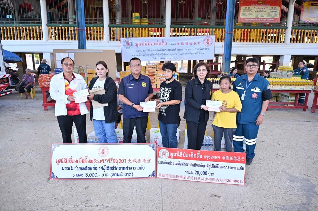 ‘ป่อเต็กตึ๊ง’ลงพื้นที่อยุธยาฟื้นฟูหลังน้ำลด ช่วยเหลือปชช.ถวายเป็นพระราชกุศลแด่สมเด็จพระพันปีหลวง