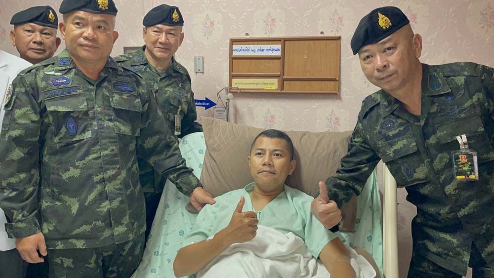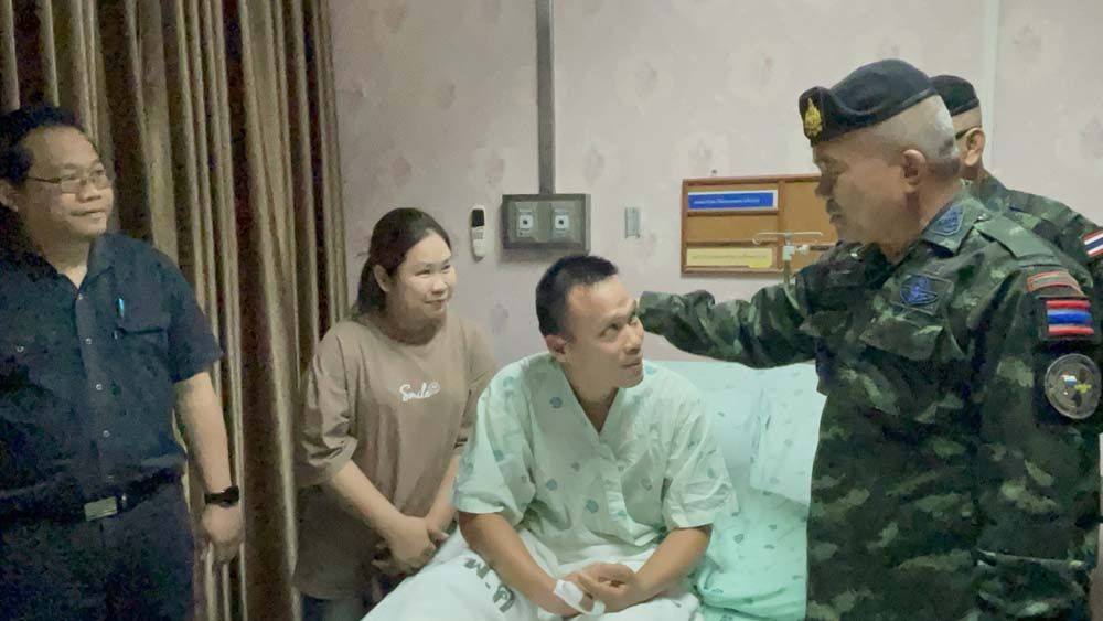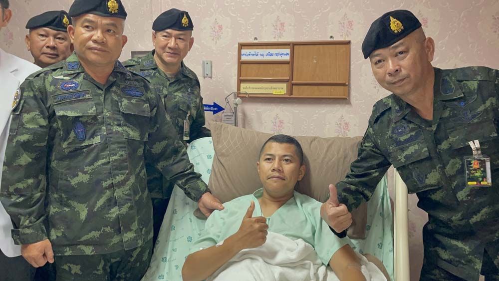 ล่าสุดอาการบาดเจ็บของทหาร ทั้งกายและจิตใจดีขึ้นตามลำดับ นพ.ชวมัย สืบนุการณ์ (ผู้อำนวยการโรงพยาบาลสุรินทร์ ) พร้อมทีมแพทย์ผู้เชี่ยวชาญได้ติดตามดูแลรักษาอย่างใกล้ชิดตลอด24ชั่วโมง ทางครอบครัวของทหารที่รับบาดเจ็บรู้สึกมีกำลังใจขึ้นมา ที่เห็นท่านแม่ทัพมาเยี่ยมถึงโรงพยาบาล และล่าสุดอาการลูกชายอาการดีขึ้น และมีหมออยู่ดูแลอย่างใกล้ชิด