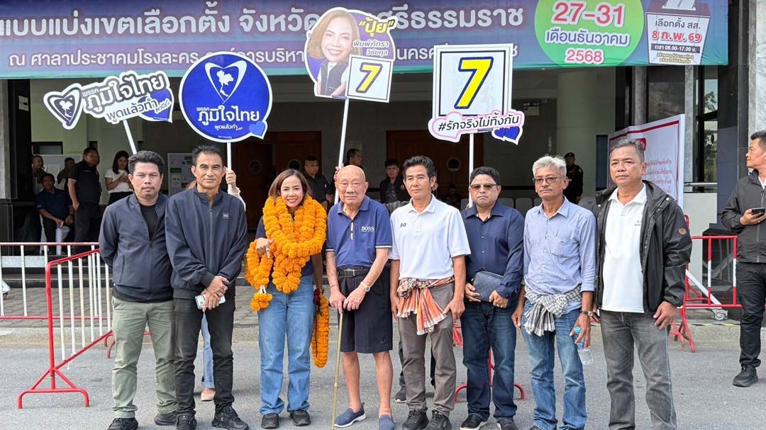30 ธันวาคม 2568 บรรยากาศในการรับสมัครเลือกตั้งสมาชิกสภาผู้แทนราษฎร ที่ศาลาประชาคมโรงละคร อบจ.นครศรีธรรมราช สนามหน้าเมือง นางสาวพิมพ์ภัทรา วิชัยกุล อดีตรัฐมนตรีว่าการกระทรวงอุตสาหกรรม อดีต สส.นครศรีธรรมราช ได้เข้ายื่นเอกสารสมัครเข้ารับเลือกตั้ง ในเขตเลือกตั้งที่ 9 นครศรีธรรมราช ในนามพรรคภูมิใจไทย ประกอบด้วยอำเภอขนอม อำเภอสิชล และบางส่วนของอำเภอท่าศาลาประกอบด้วย ตำบลกลาย ตำบลสระแก้ว ตำบลตลิ่งชัน ตำบลท่าขึ้น ตำบลไทยบุรี และตำบลหัวตะพาน โดยเป็นการยืนสมัครเป็นลำดับที่ 7 จึงได้หมายเลขประจำตัวผู้สมัคร คือหมายเลข 7 ไปโดยปริยาย