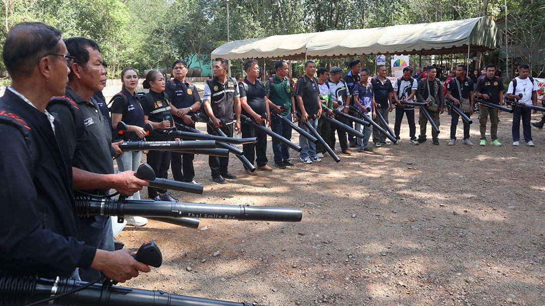 ต่อมานายสุชาติ ชมกลิ่น รองนายกรัฐมนตรี รัฐมนตรีว่าการกระทรวงทรัพยากรธรรมชาติและสิ่งแวดล้อม ได้มอบเครื่องเป่าลมให้กับสภาลมหายใจจังหวัดกาญจนบุรี จำนวน 30 เครื่อง และนอกจากนี้สภาลมหายใจฯยังได้รับการสนับสนุนจากภาคเอกชนและประชาชนอีก จำนวน 4 เครื่อง ซึ่งสภาลมให้ใจได้มอบอุปกรณ์ดังกล่าวให้กับประชาชนซึ่งเป็นภาคีเครือข่ายป้องกันไฟป่าในพื้นที่ อ.เมืองกาญจนบุรี อ.ศรีสวัสดิ์ และ อ.บ่อพลอยไปแล้วทั้งหมด ซึ่งทุกคนต่างก็ผ่านการฝึกอบรมในการนำไปใช้งานและบำรุงรักษาอุปกรณ์กันเป็นอย่างดี