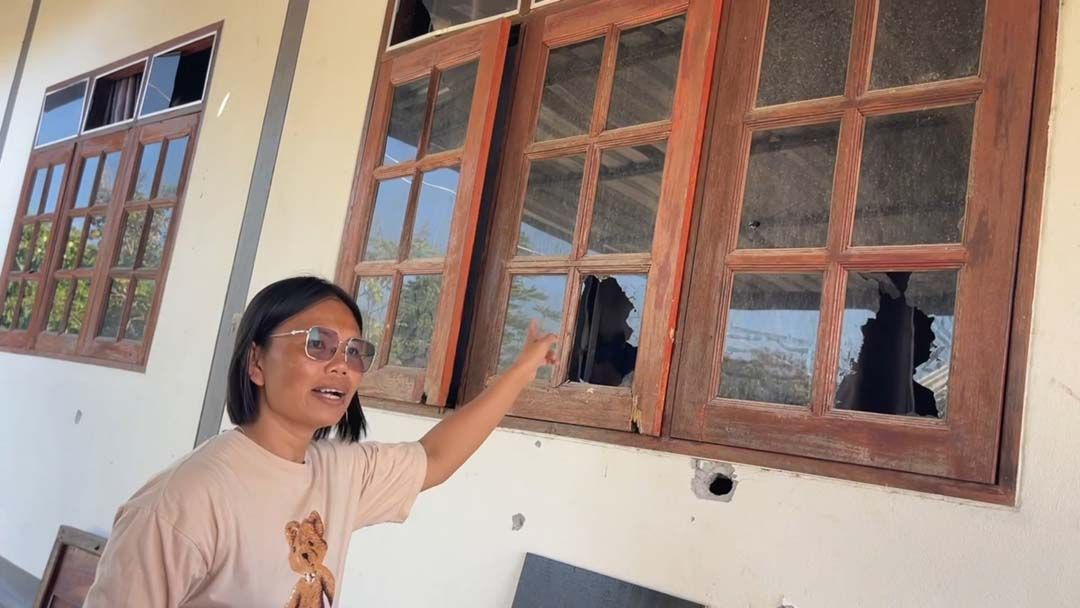 นางจริยา กล่าวว่า เพิ่งกลับมาบ้าน รู้ข่าวตั้งแต่บ้านโดนระเบิดวันที่ 16 ธ.ค. วินาทีแรกที่พ่อโทร.ไปบอกว่าระเบิดลงบ้าน ตกใจและเสียใจมาก ตอนนี้อยู่ระหว่างรอทางการเข้ามาสำรวจให้การช่วยเหลือ ยังเข้าไปพักอาศัยไม่ได้ ที่เหลือพออยู่ได้คือห้องครัว จึงต้องอาศัยอยู่กับญาติบ้านข้างๆไปก่อน ตอนนี้ก็มีหวั่นใจอยู่บ้างกับสถานการณ์เวลานี้ แต่เราก็มีการเตรียมความพร้อมอยู่ตลอดเวลาอยู่แล้ว ถ้าผู้นำแจ้งให้ออกก็ต้องออก