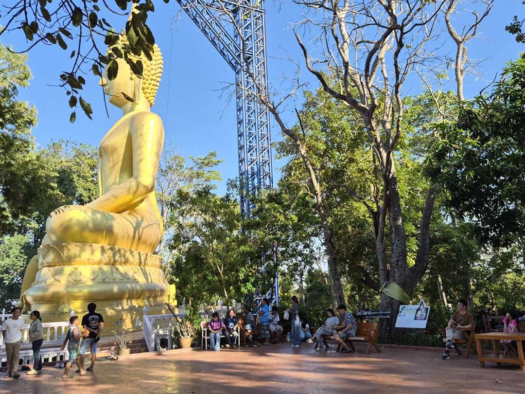 ประชาชนและนักท่องเที่ยวแห่กราบไหว้สักการะขอพร"พระสุภัทรบพิตร"พระพุทธรูปจำลององค์ใหญ่ บนยอดภูเขาไฟกระโดง จ.บุรีรัมย์ เพื่อเสริมสิริมงคลแก่ชีวิต ในช่วงหยุดยาวเทศกาลปีใหม่ 2569 พร้อมเที่ยวชมวิวทิวทัศน์ตัวเมืองบุรีรัมย์ และสัมผัสอากาศที่กำลังเย็นสบายจากยอดเขา ชมสะพานแขวนปากปล่องภูเขาไฟที่มอดดับมาแล้วนับพันปี และชมผลโยนีปีศาจ ต้นไม้แปลกที่มีผลคล้ายอวัยวะเพศหญิง พร้อมอธิษฐานให้ชายแดนไทย-กัมพูชา สงบสุขไม่เกิดการสู้รบอีก