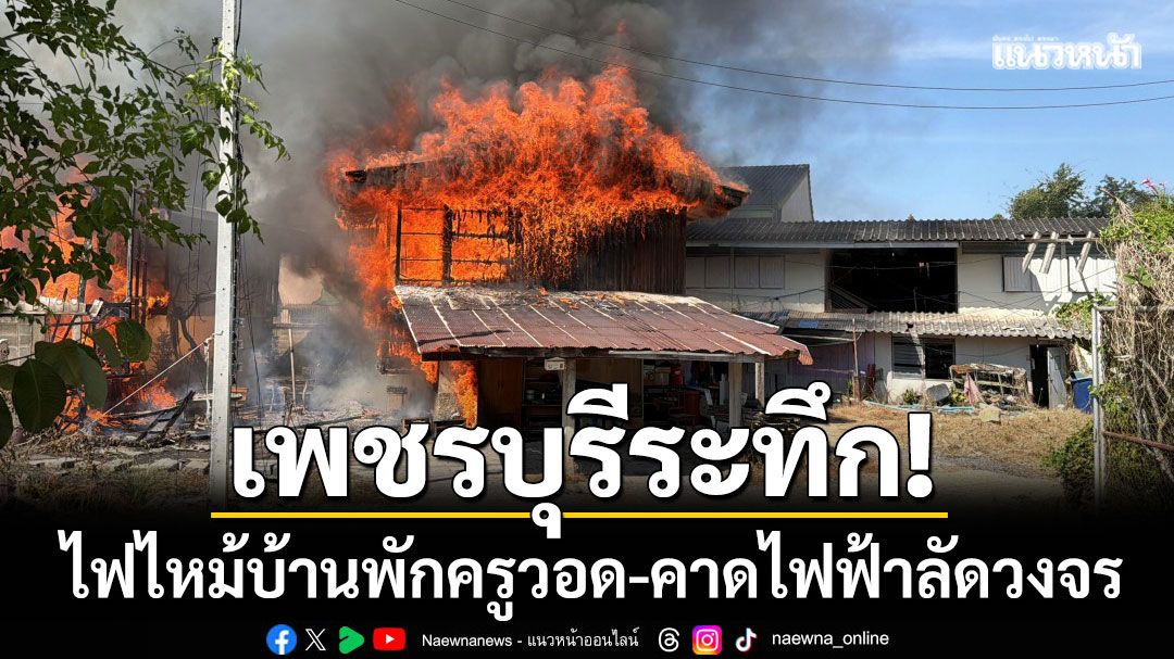 เพชรบุรีระทึก! เพลิงไหม้บ้านพักครูวอด 2 หลัง คาดไฟฟ้าลัดวงจร-เสียหายหลักล้าน