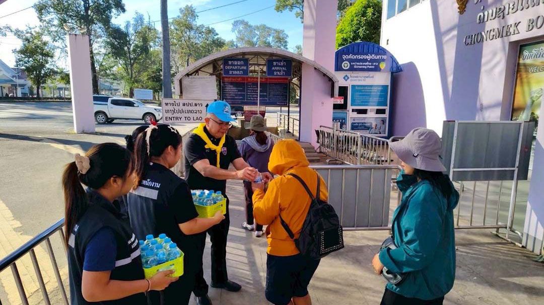 พ.ต.อ.สำราญ กลั่นมา ผกก.ตม.จว.อุบลราชธานี ลงพื้นที่การปฏิบัติ อำนวยความสะดวก ณ จุดผ่านแดนถาวรช่องเม็ก พร้อมมอบน้ำดื่มกับผู้เดินทางผ่านเข้า - ออก บรรยากาศเต็มไปด้วยดีต่อผู้เดินทาง และให้เข้มงวดกับการควบคุมการกระทำผิดกฎหมายอย่างเคร่งครัด