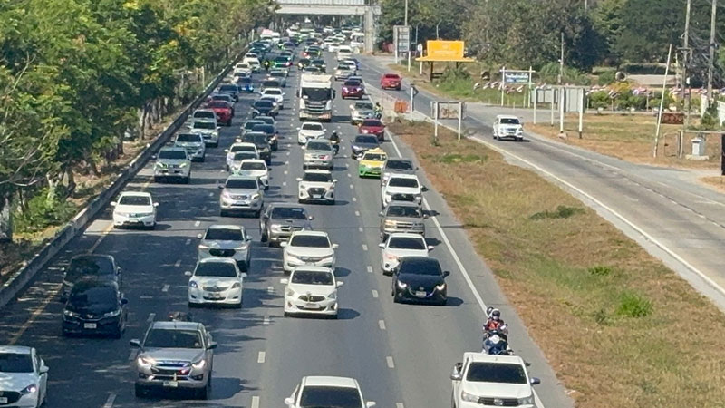 สายเอเชียขาเข้ากรุงเทพ รถหนาแน่นเต็มทุกช่องจราจร เคลื่อนตัวช้า มีชลอตัวเป็นระยะ สลับหยุดนิ่ง ตามคอสะพาน ทางร่วมทางแยก ใช้ความเร็วได้ประมาณ 30-40 กิโลเมตร