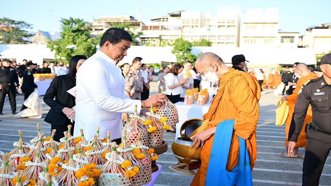 เวลา 07.00 น. ผู้ว่าราชการกรุงเทพมหานคร ประธานในพิธีฝ่ายฆราวาส จุดธูปเทียนบูชาพระรัตนตรัย เจ้าหน้าที่อาราธนาศีล ประธานสงฆ์ให้ศีล ผู้ร่วมพิธีรับศีล จากนั้นพระสงฆ์ทรงสมณศักดิ์ จำนวน 10 รูป เจริญพระพุทธมนต์ ผู้ว่าราชการกรุงเทพมหานคร พร้อมด้วยคณะผู้บริหารกรุงเทพมหานคร ร่วมตักบาตรพระสงฆ์ทรงสมณศักดิ์ ถวายเครื่องจตุปัจจัยไทยธรรมและภัตตาหารเพลบรรจุปิ่นโต พระสงฆ์ทรงสมณศักดิ์อนุโมทนา ประธานในพิธีฝ่ายฆราวาสกรวดน้ำ รับพร จากนั้นพระสงฆ์ จำนวน 69 รูป ออกรับบิณฑบาต เพื่อความเป็นสิริมงคลต้อนรับศักราชใหม่ 2569