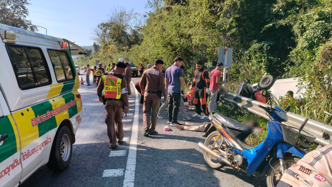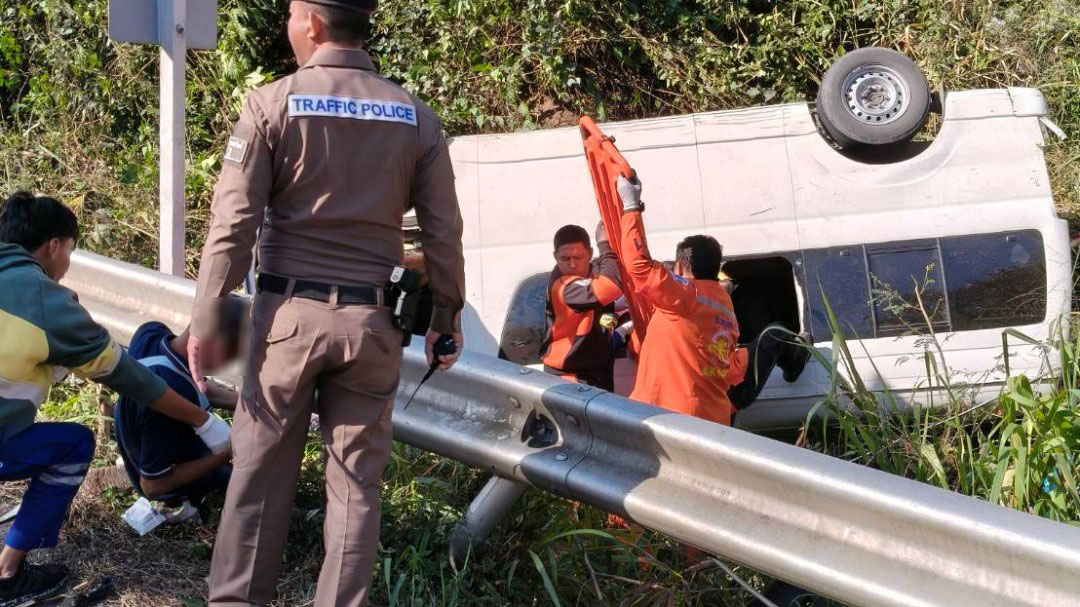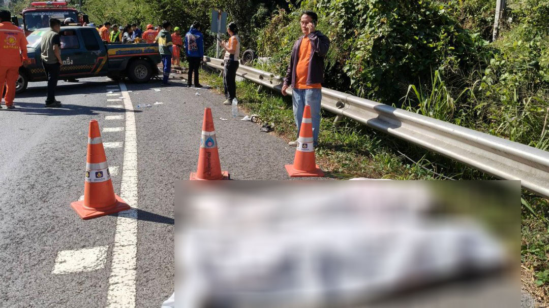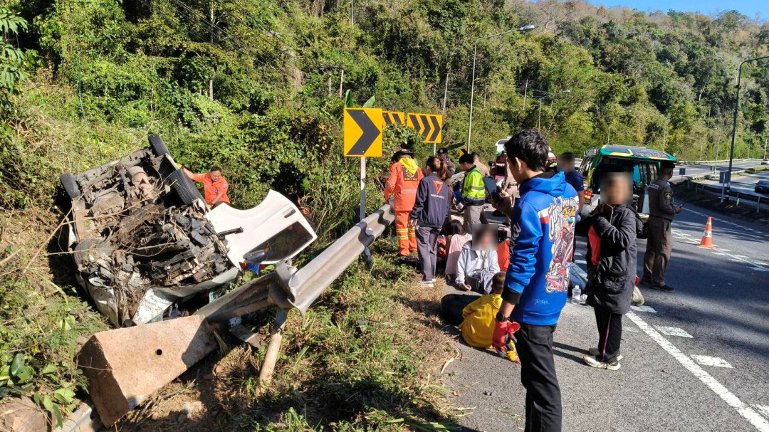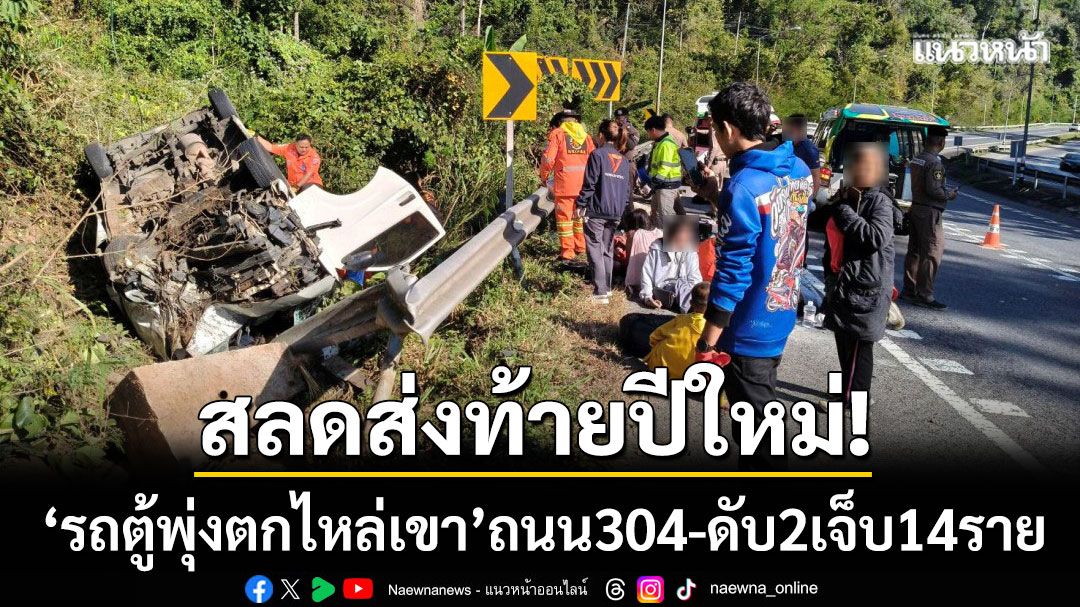 สลดส่งท้ายปีใหม่! รถตู้พุ่งตกไหล่เขาโค้งวนศาสตร์สาย 304 อุดมทรัพย์ ดับ 2 เจ็บ 14 กู้ภัยรุดช่วยท่ามกลางแก๊สรั่ว