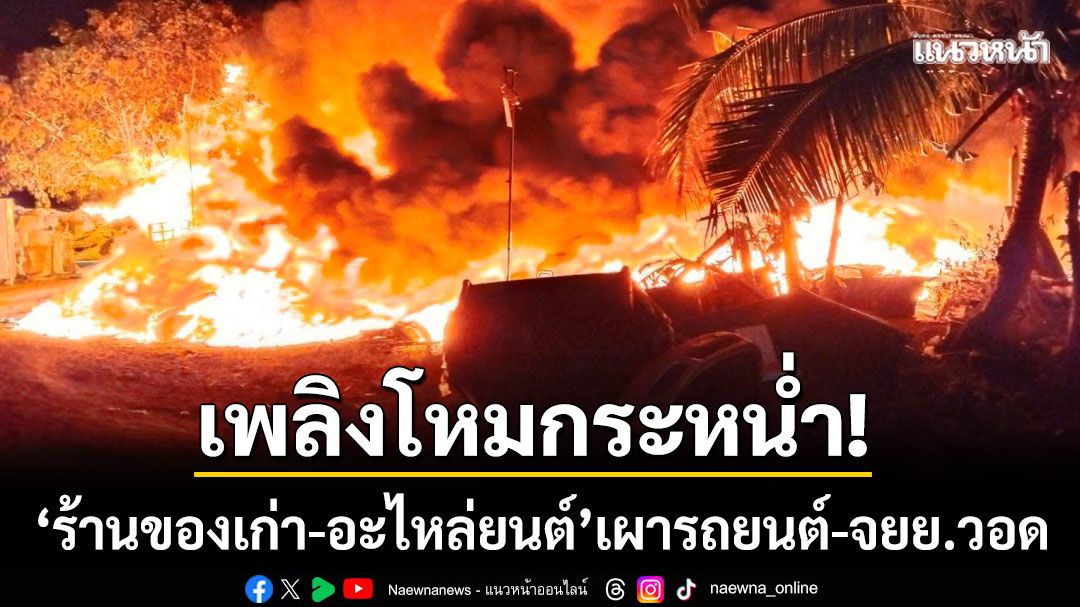 บ่อวินระทึก! ไฟไหม้ร้าน ‘รับซื้อของเก่า-อะไหล่ยนต์’ เผารถยนต์-จยย.วอดยับ 8 คัน
