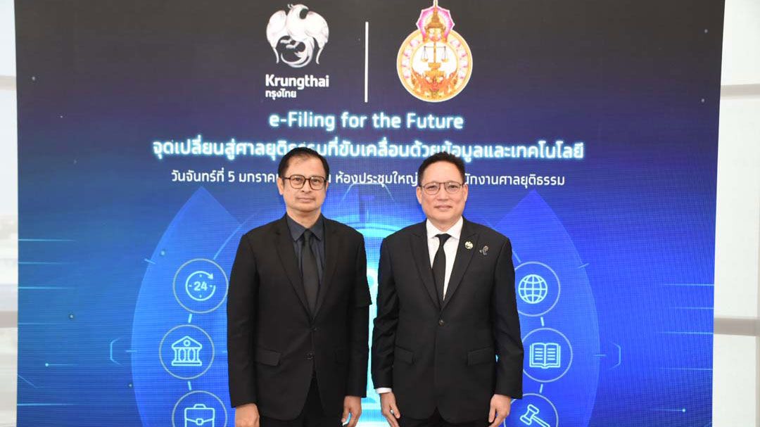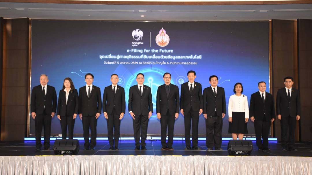 เมื่อวันที่ 5 มกราคม 2569 ที่ห้องประชุมใหญ่ อาคารสำนักงานศาลยุติธรรม ถ.รัชดาภิเษก นายธีรทัย เจริญวงศ์ เลขาธิการสำนักงานศาลยุติธรรม พร้อมด้วยนายผยง ศรีวณิช กรรมการผู้จัดการใหญ่ ธนาคารกรงุไทย จำกัด (มหาชน) ได้ร่วมงาน “e-Filing for the Future : จุดเปลี่ยนสู่ศาลยุติธรรมที่ขับเคลื่อนด้วยข้อมูลและเทคโนโลยี” ซึ่งจัดขึ้นเพื่อเป็นหมุดหมายสำคัญในการยกระดับพัฒนาระบบรับส่งอิเล็กทรอนิกส์ (e-Filing) ของศาลยุติธรรม